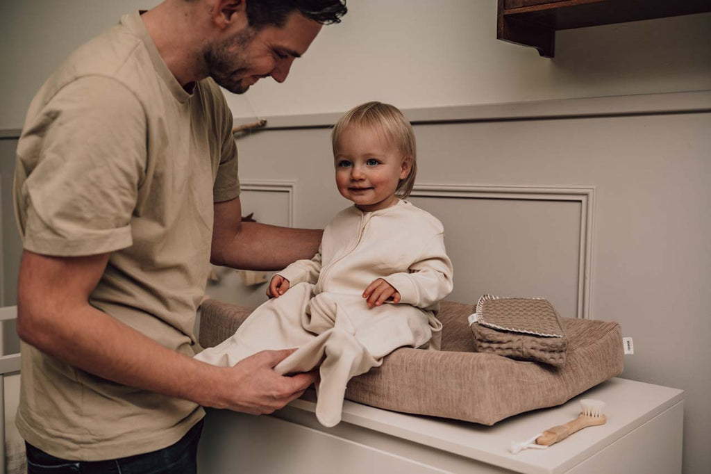 Om te weten welke maat jouw kindje nodig heeft, meet je je baby op van de schouders tot de voetjes. Tel daar nog zo’n 10 à 15 centimeter bij en je hebt de juiste maat!