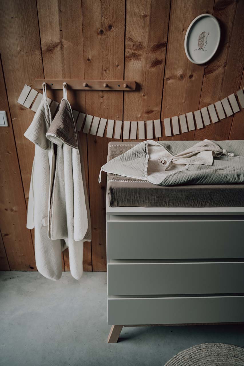 De badcape is gemaakt van hoogwaardig katoen dat vriendelijk is voor de gevoelige babyhuid en tegelijkertijd duurzaam en gemakkelijk te onderhouden is. Zijn royale afmetingen zorgen voor een comfortabele en knusse wikkeling, waardoor je baby zich veilig en geborgen voelt.