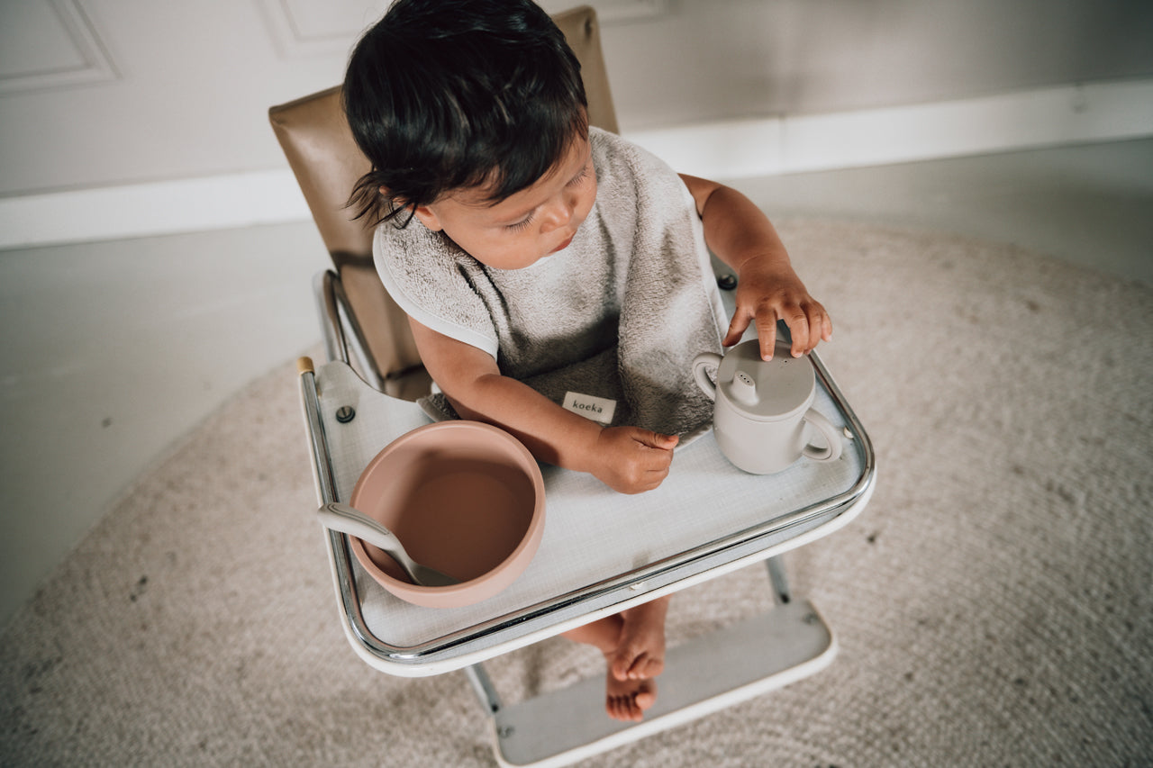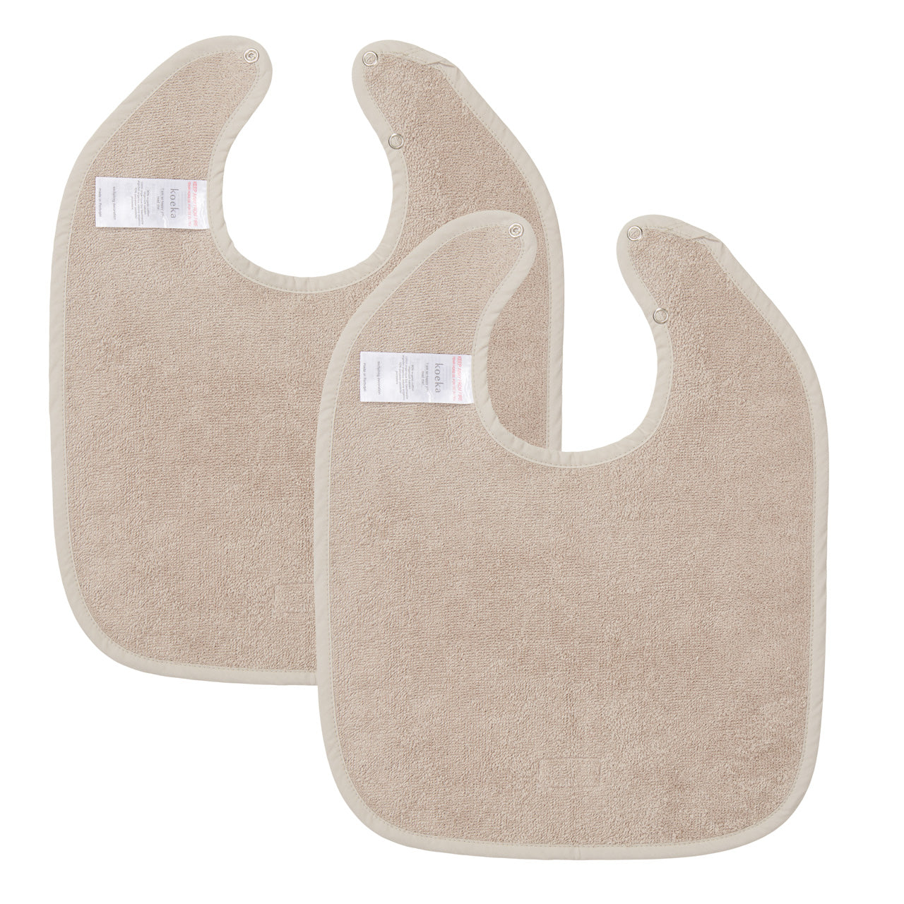 Leuke set van twee katoenen slabben van Koeka. Laat je kindje maar smossen nu, de slabben van Koeka vangen het op!