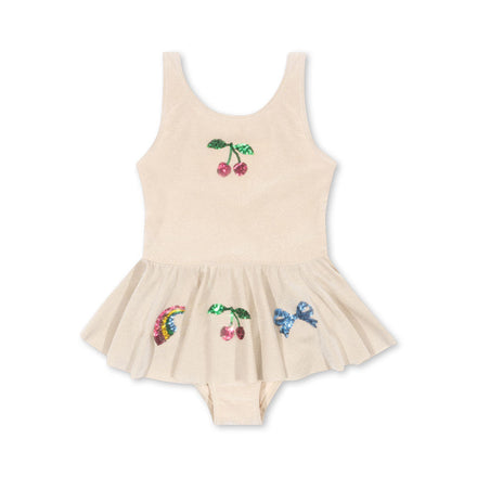 Het badpakje voor kindjes tussen 6M en 18M is met sluitingen met drukknoopjes langs de dijen.