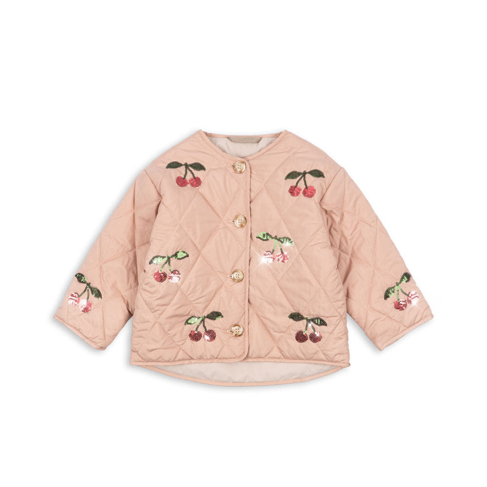 Dit licht gewatteerde quiltjasje is versierd met fonkelende pailletten die elke outfit meteen een feestelijk tintje geven. De losse, comfy pasvorm maakt het ideaal voor kleine avonturiers, terwijl de ronde hals en slanke manchetten zorgen voor die schattige touch.