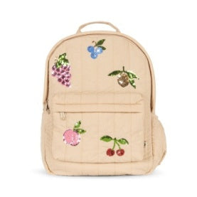 Superleuke rugzak van Konges Slojd met een handig flessenvakje, zak aan de voorkant en een borstriem.