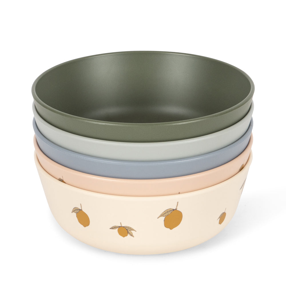 Een praktische set kommetjes gemaakt van gerecycled PET, perfect voor kleine maaltijden of als decoratieve schaaltjes voor snacks. Dankzij het lichte en stevige materiaal zijn ze ideaal voor dagelijks gebruik door jonge kinderen.