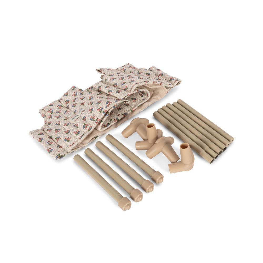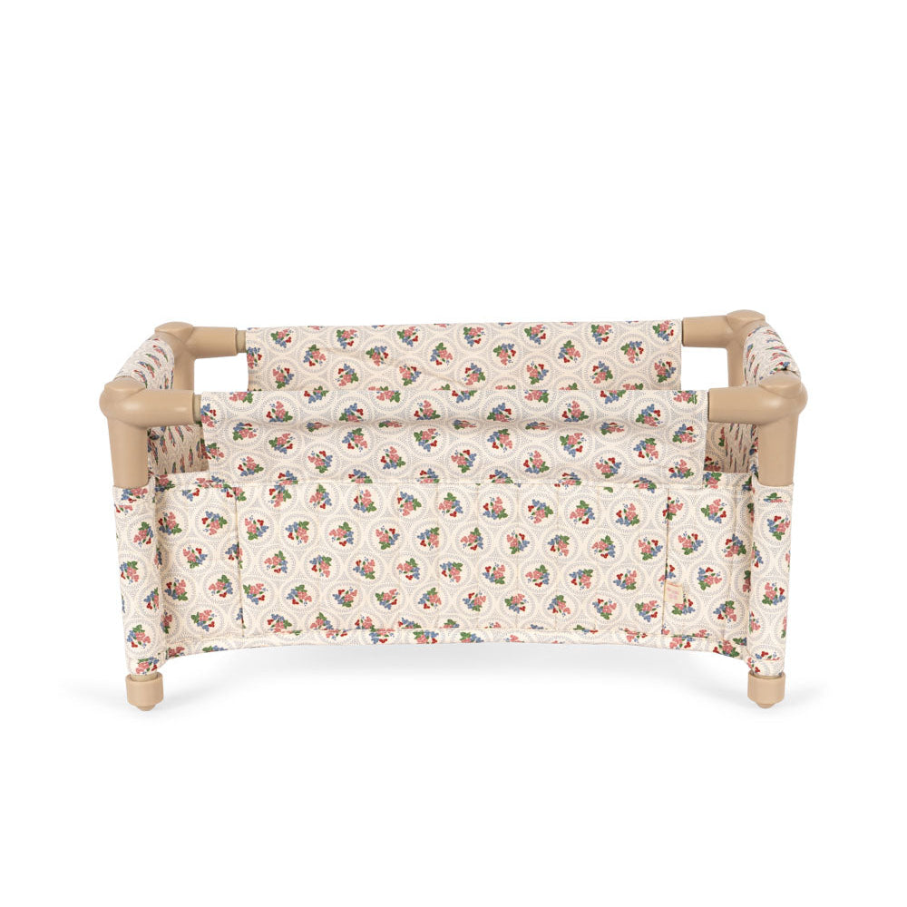 Opvouwbaar reisbed voor kleine poppen. Makkelijk mee te nemen op reizen waar kleine vriendjes nodig zijn. Het bed kan worden ingeklapt en in de tas worden opgeborgen.