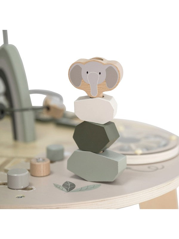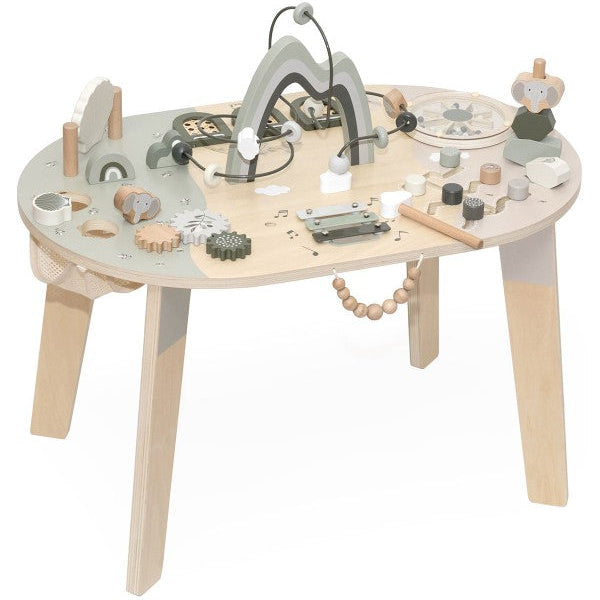 Op het tafelblad vind je onder andere tandwielen, schuifspelletjes en vormen die bijdragen aan de ontwikkeling van de oog-handcoördinatie, fijne motoriek en het ruimtelijk inzicht. Alles is stevig en kindvriendelijk vormgegeven, zodat je kleintje veilig op ontdekkingstocht kan gaan.