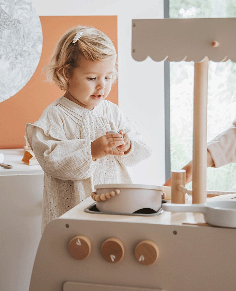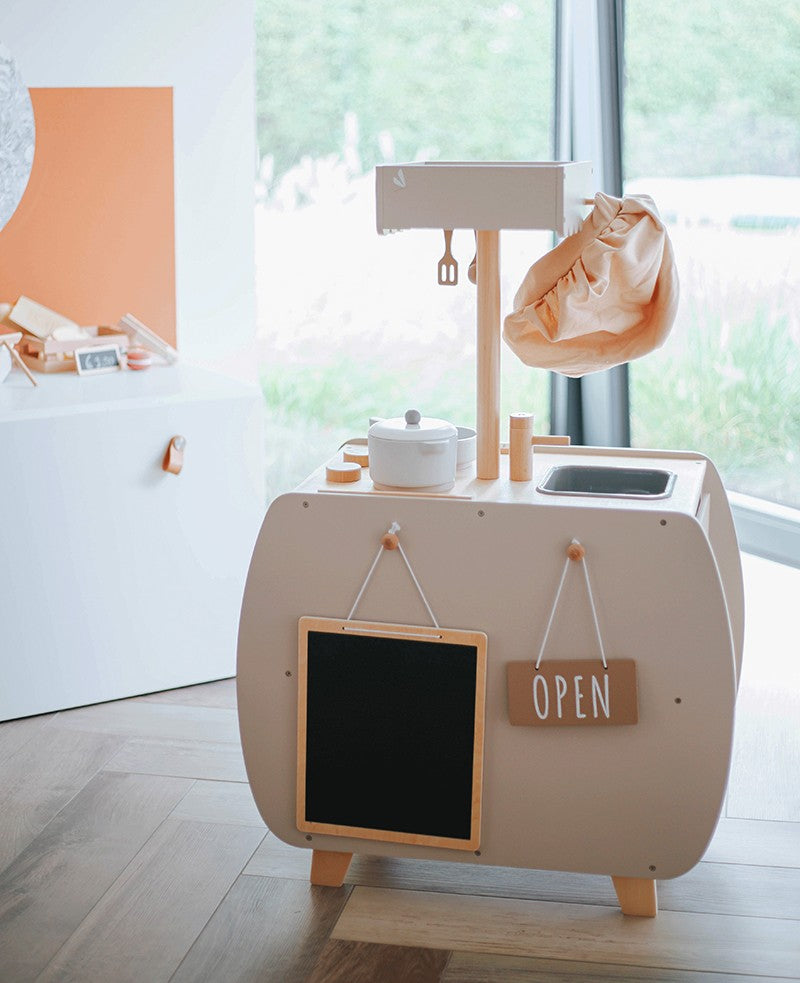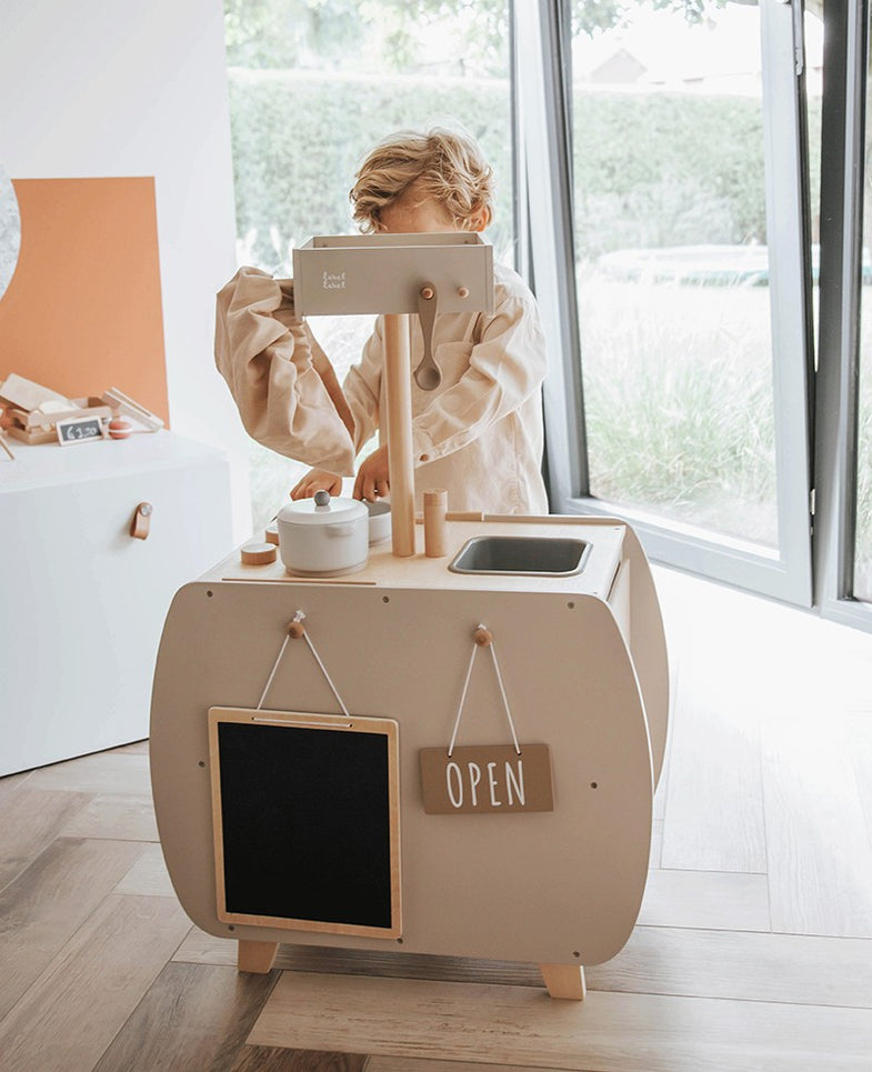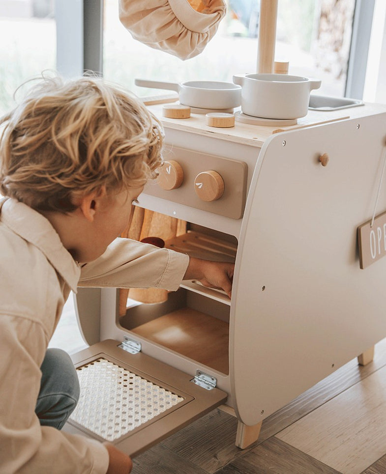 Natuurlijke speelsheid gaat samen met de verbeeldingsrijke culinaire avonturen die je kindje beleeft met de Label Label Houten Bistrokeuken met accessoires. Deze prachtige houten speelkeuken is ontworpen om de creativiteit van kinderen te stimuleren en hun fantasie tot leven te brengen.