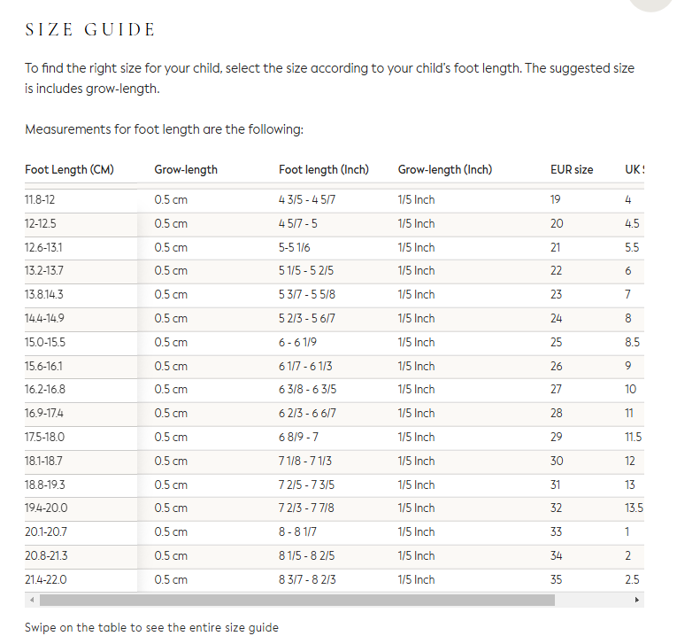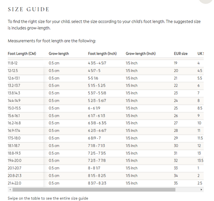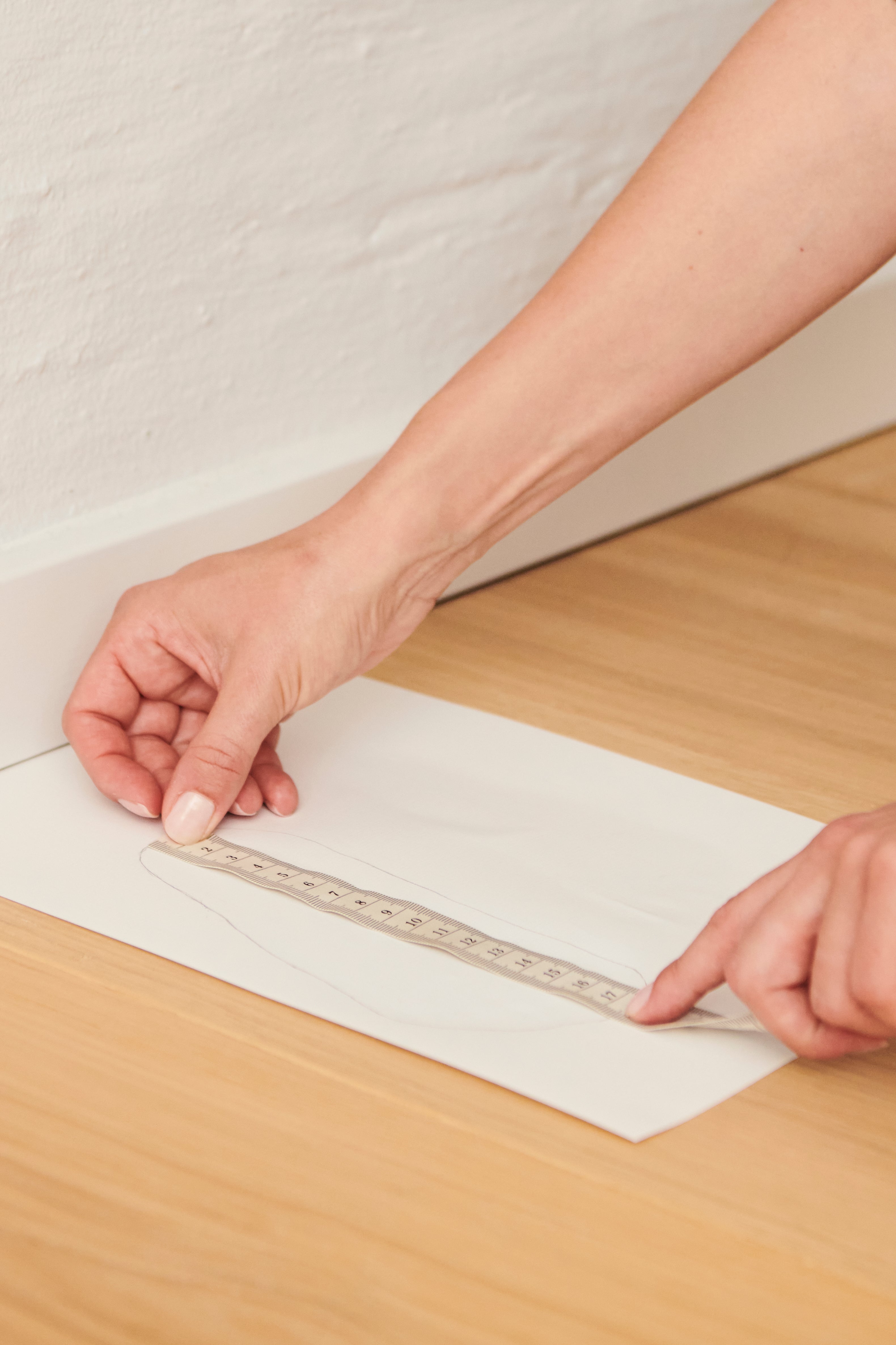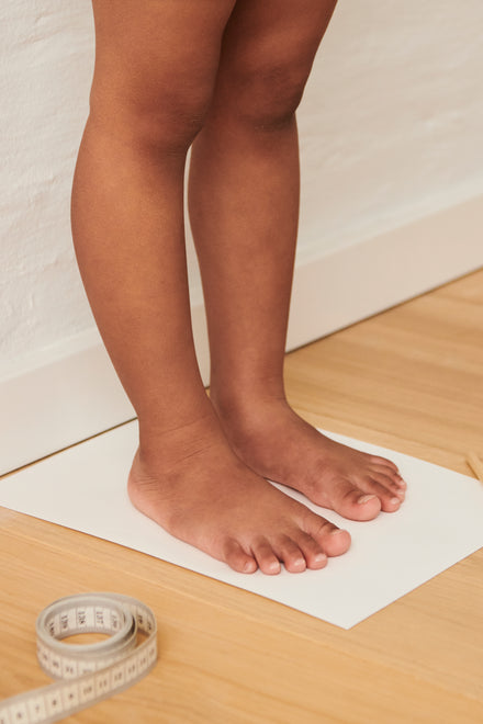 Schoenmaten met afmetingen voetje plat op de grond