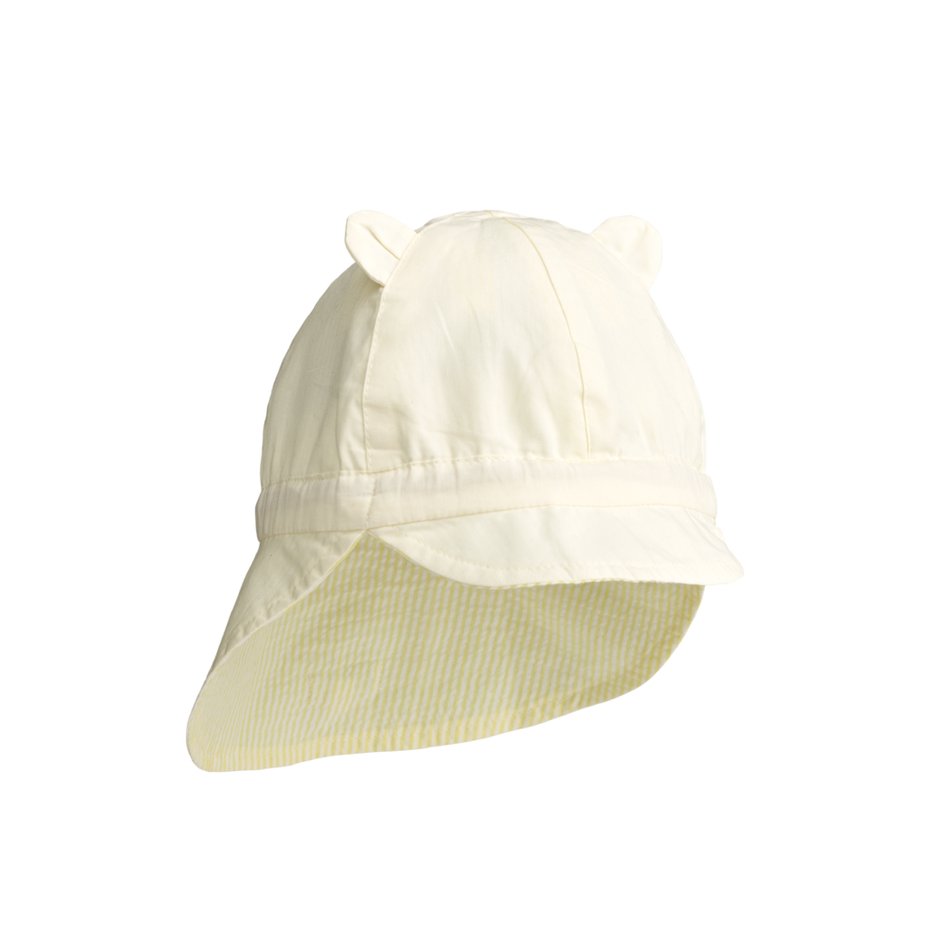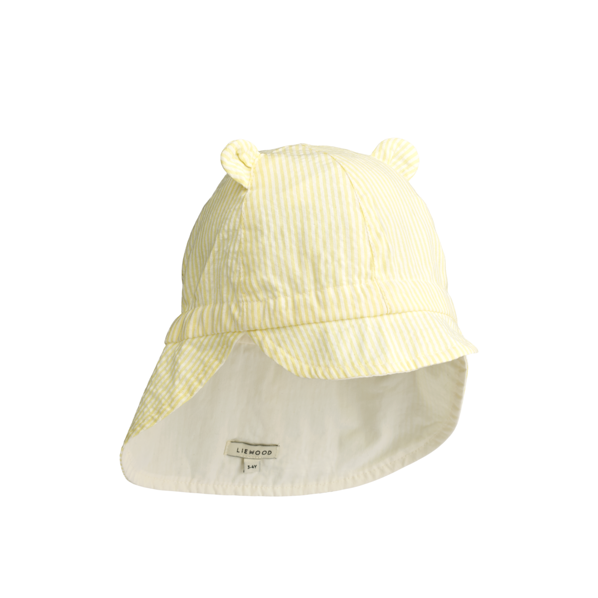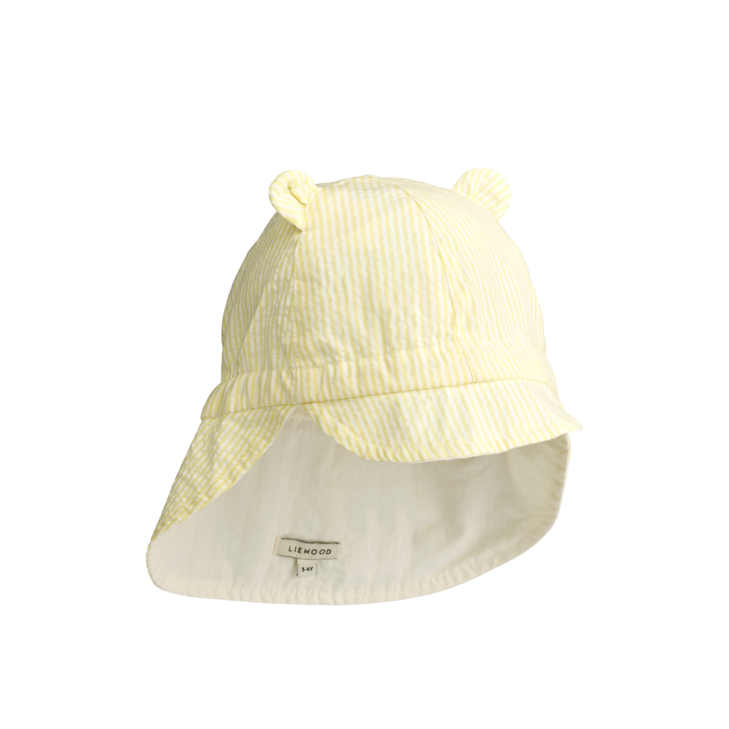 * Liewood Gorm Omkeerbaar Seersucker UV Zonnehoedje Met Oortjes | Y/D stripe Lemonade / Creme de la creme