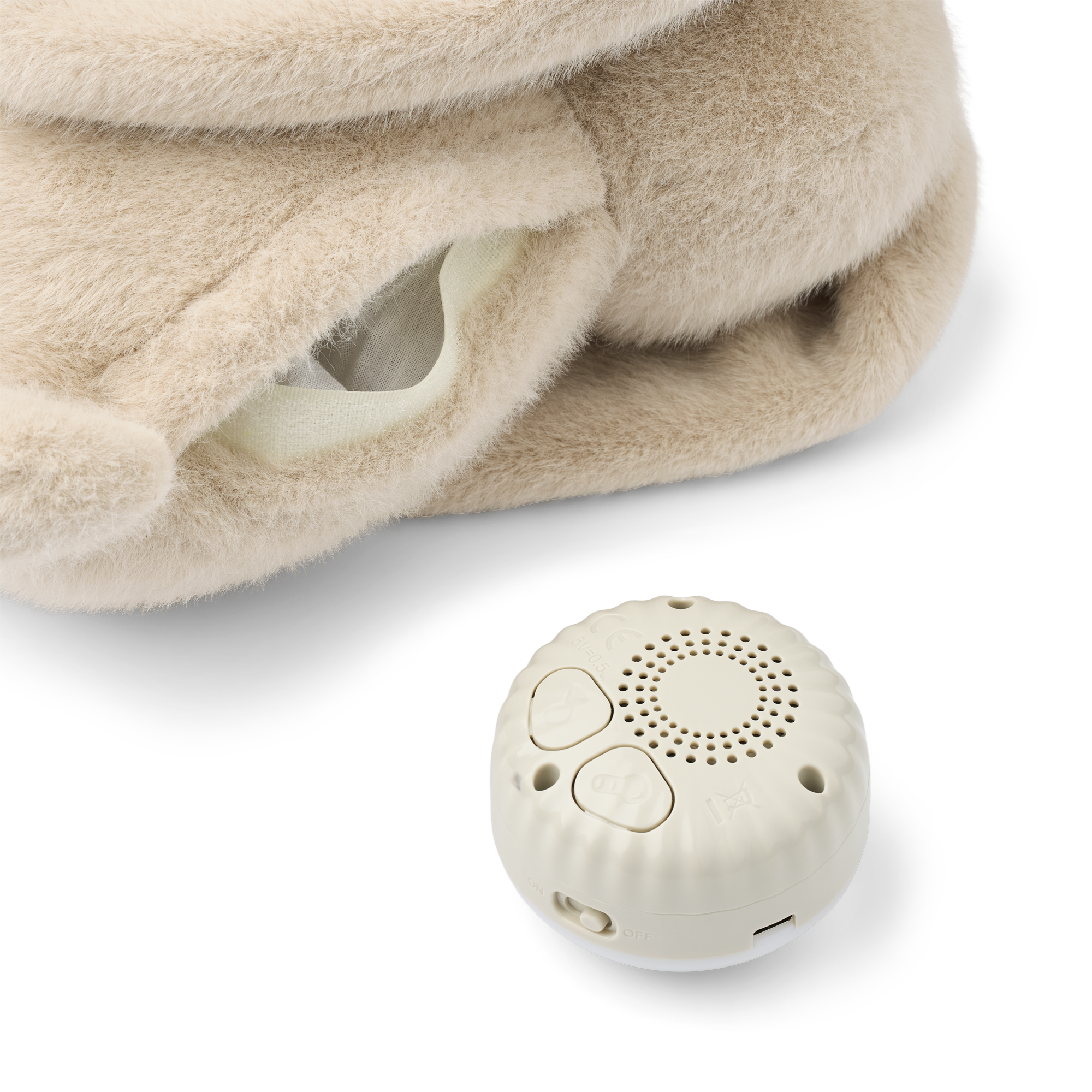 Maak kennis met Hattie de brombeer. Het zachte, pluchen speeltje speelt verschillende ontspannende geluiden af, gemaakt om je baby te kalmeren en beter te laten slapen. Met een zacht LED-lichtje in de buik en Smart-Cry detectie.