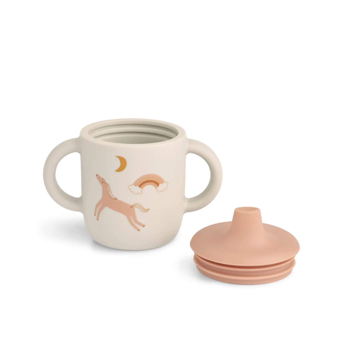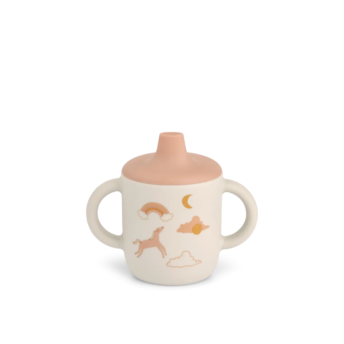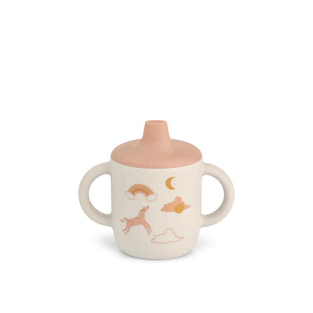 Superhandige en zachte siliconen beker waarmee je kleine flamingo makkelijk zelf kan drinken! Het deksel kan eraf, dus je kan hem heel lang blijven doorgebruiken.