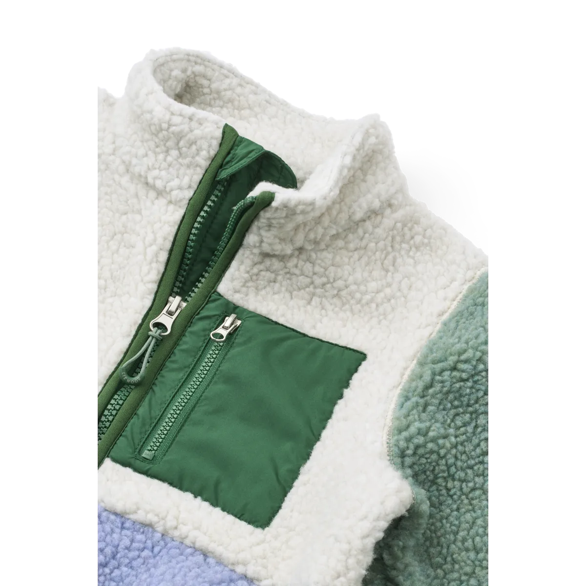 De zachte NOLAN fleecejas van Liewood is dé favoriet voor kinderen. Gebruik hem los als jas of als extra warme laag onder een regenjas. Dankzij de hoge opstaande kraag biedt hij extra bescherming tegen wind, terwijl de volledige ritssluiting met interne windflap zorgt voor comfort. Handige zakken maken het perfect voor kleine schatten.