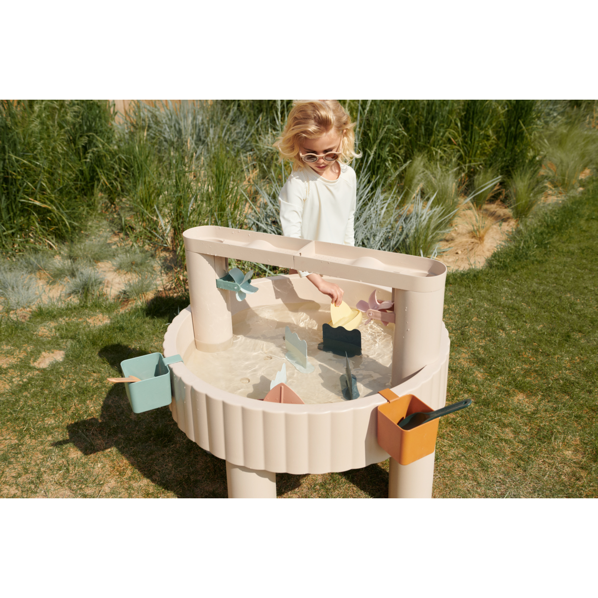 Een multifunctionele activiteitentafel van Liewood voor je kleintje vanaf 3 jaar. Deze wordt geleverd inclusief 2 schepjes, 2 emmertjes, 4 scheidinglijnen, 2 bootjes, 4 zandvormpjes.