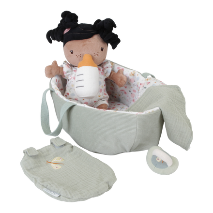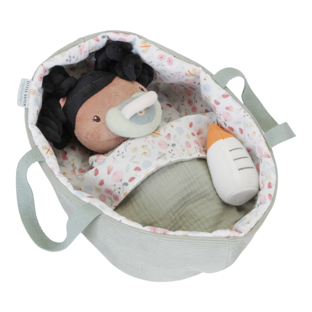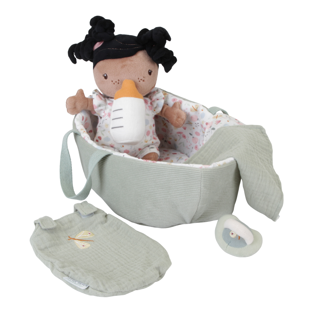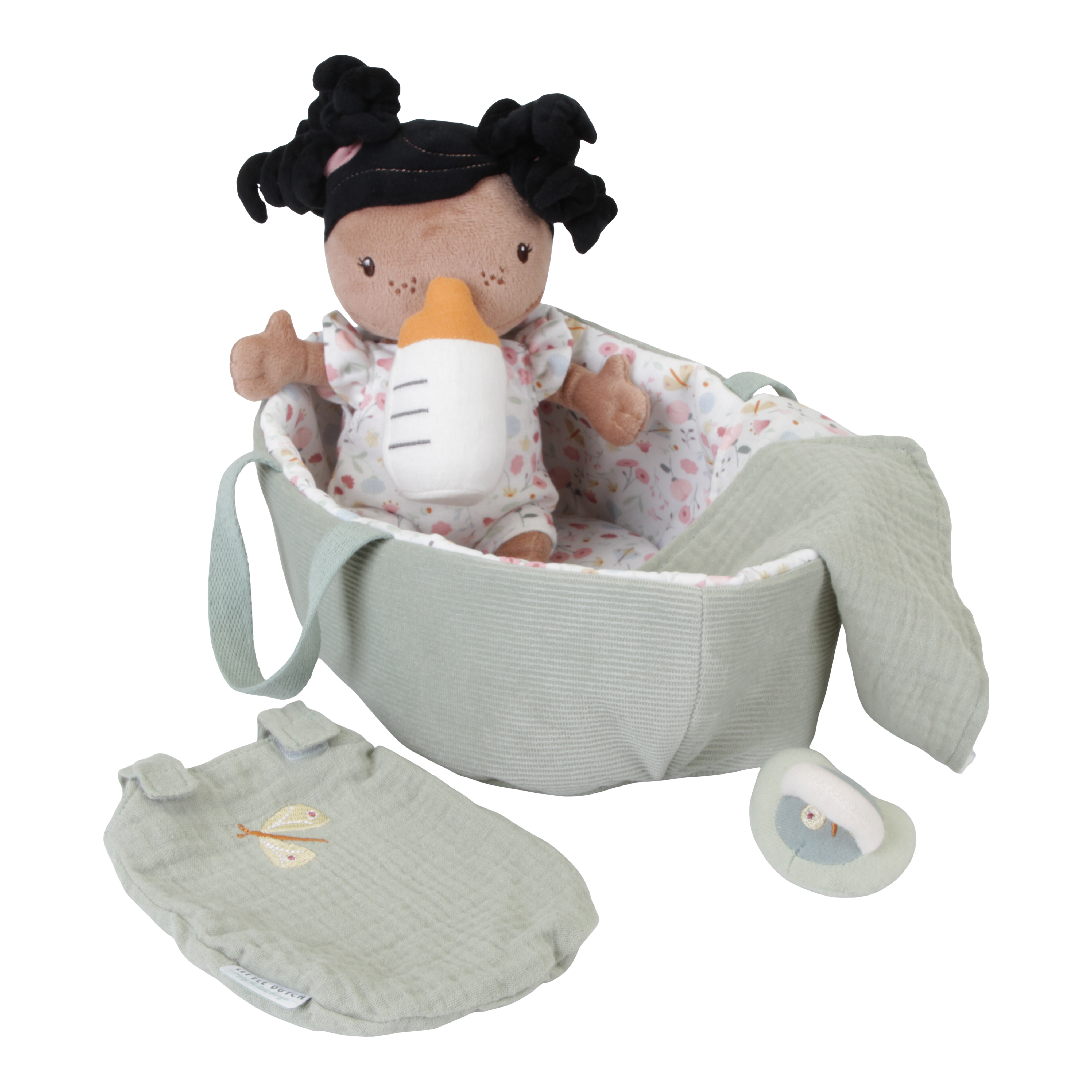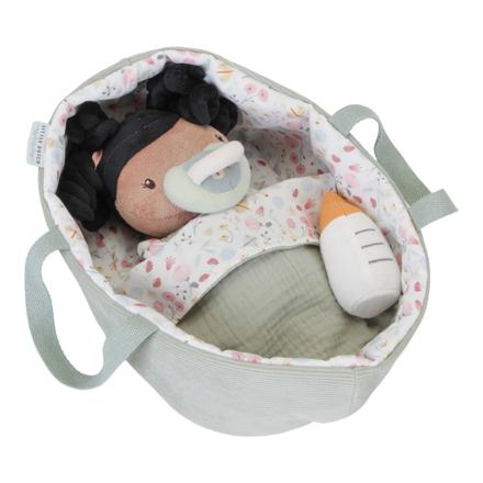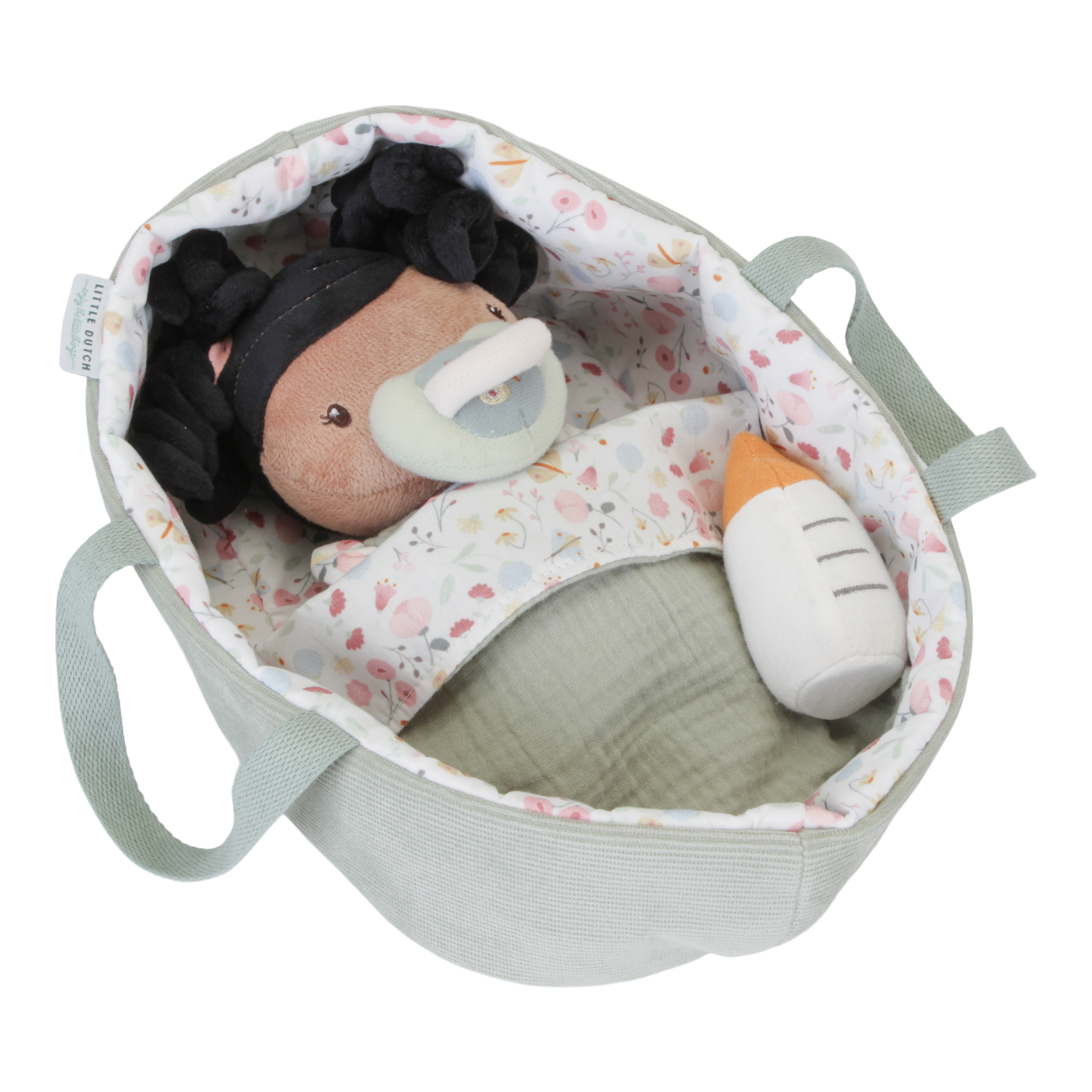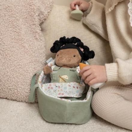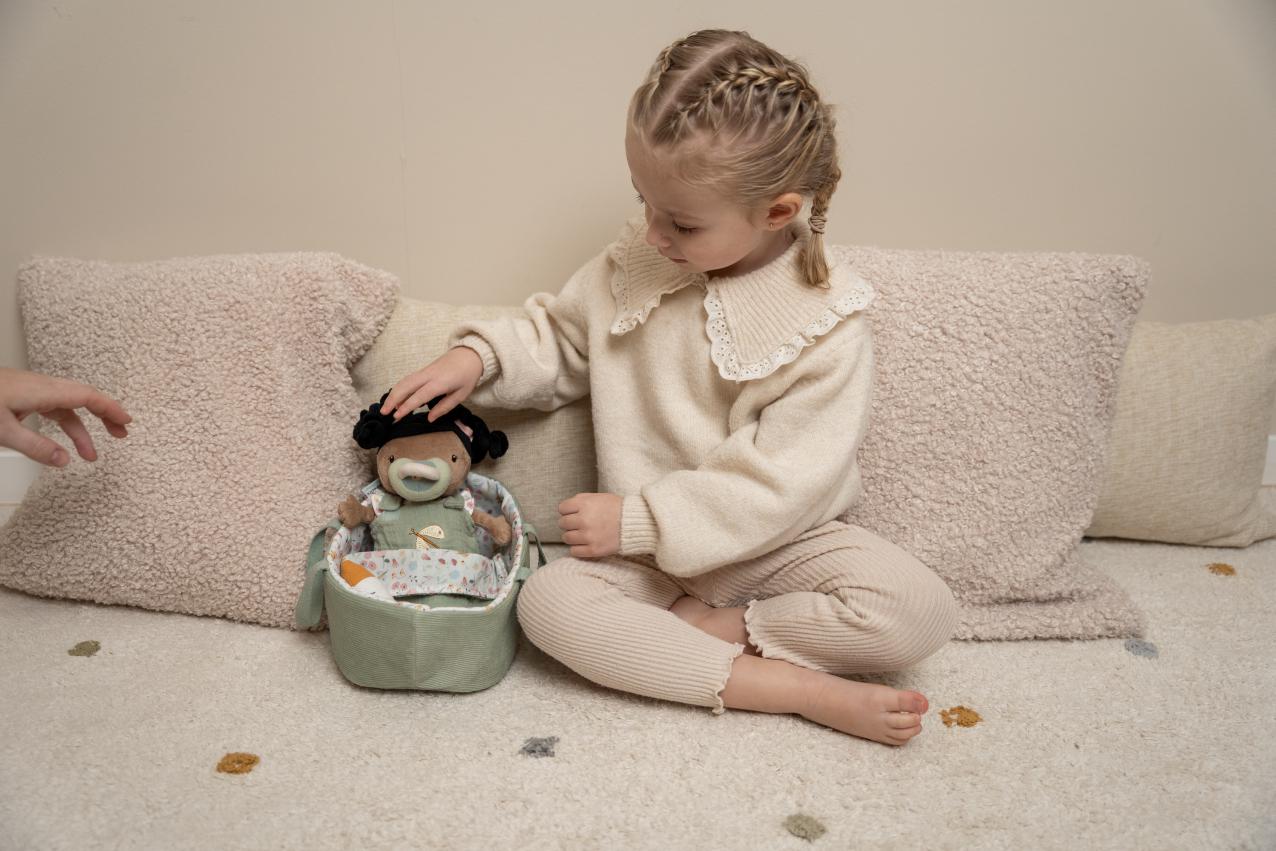 Maak kennis met kleine baby Evi. Deze lieve pluche pop van Little Dutch wil graag geknuffeld en verzorgd worden. Zorgzame poppenmoeders en -vaders kunnen kleine Evi de fles of de speen geven, de luier verschonen en lekker instoppen onder een dekentje. Ook kan ze makkelijk mee op reis in het schattige reismandje. Zo leren kinderen spelenderwijs een verzorgende rol op zich te nemen. Baby Evi bewaart al hun geheimen en zal ze nooit aan iemand vertellen. Ze is heerlijk zacht om tegenaan te kruipen, wat kinderen een veilig gevoel geeft.