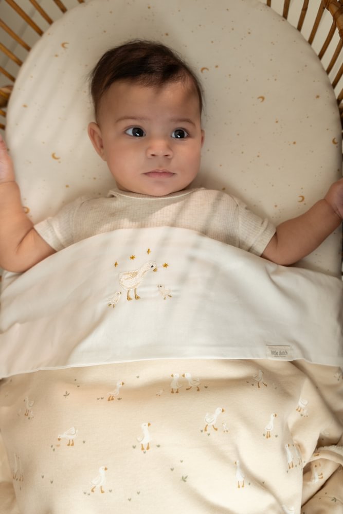 Bedek het matras van je kleintje met dit hoeslaken voor een goede nachtrust, zodat ook de kleinste sterren lekker kunnen slapen. Het zachte biologische katoen, behandeld met een perzikwassing, zorgt voor rustgevend comfort waar zelfs de wildste dromen van tot rust komen. Het elastische katoen sluit perfect om het matras en blijft mooi, zelfs na meerdere wasbeurten. De crèmekleur met de schattige Moon & Stars print brengt een dromerige sfeer in de kamer van je kindje en past prachtig bij het beddengoed van Little Dutch.