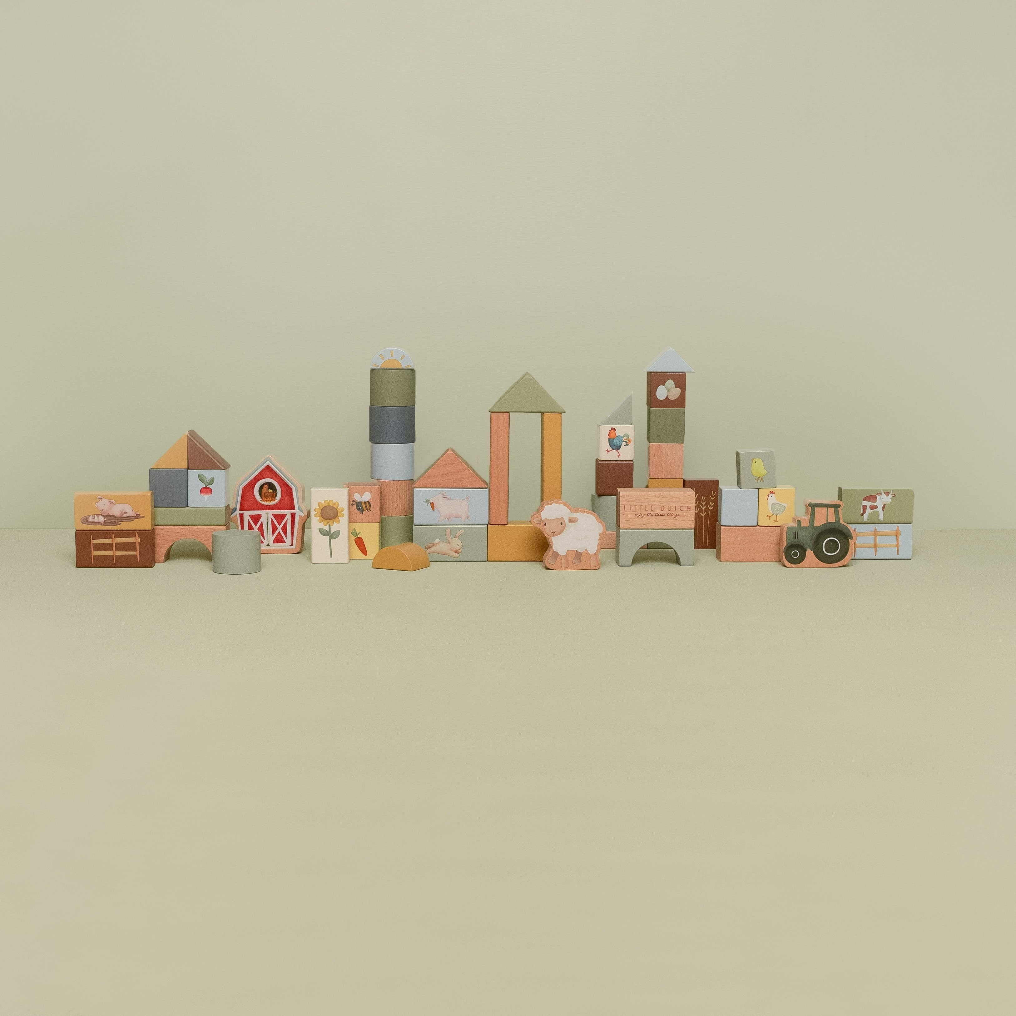Deze houten blokken in ton zijn onmisbaar. In de ton zitten maar liefst 50 houten blokjes met de mooie prints van onze Little Farm collectie. Stapel de verschillende blokjes om de leukste boerderij te bouwen. De blokken staan garant voor heel veel bouwplezier en kunnen makkelijk opgeborgen worden in de ton!