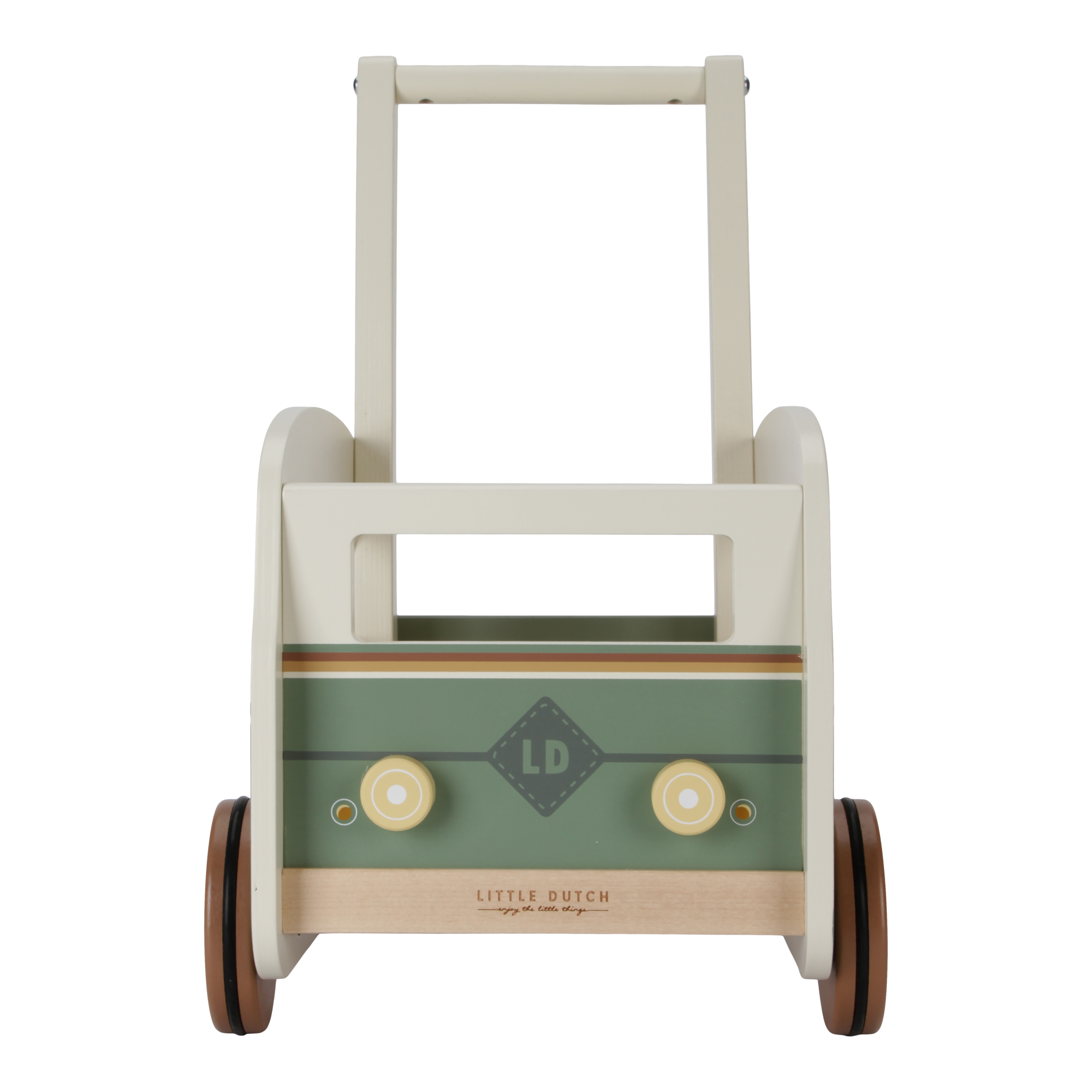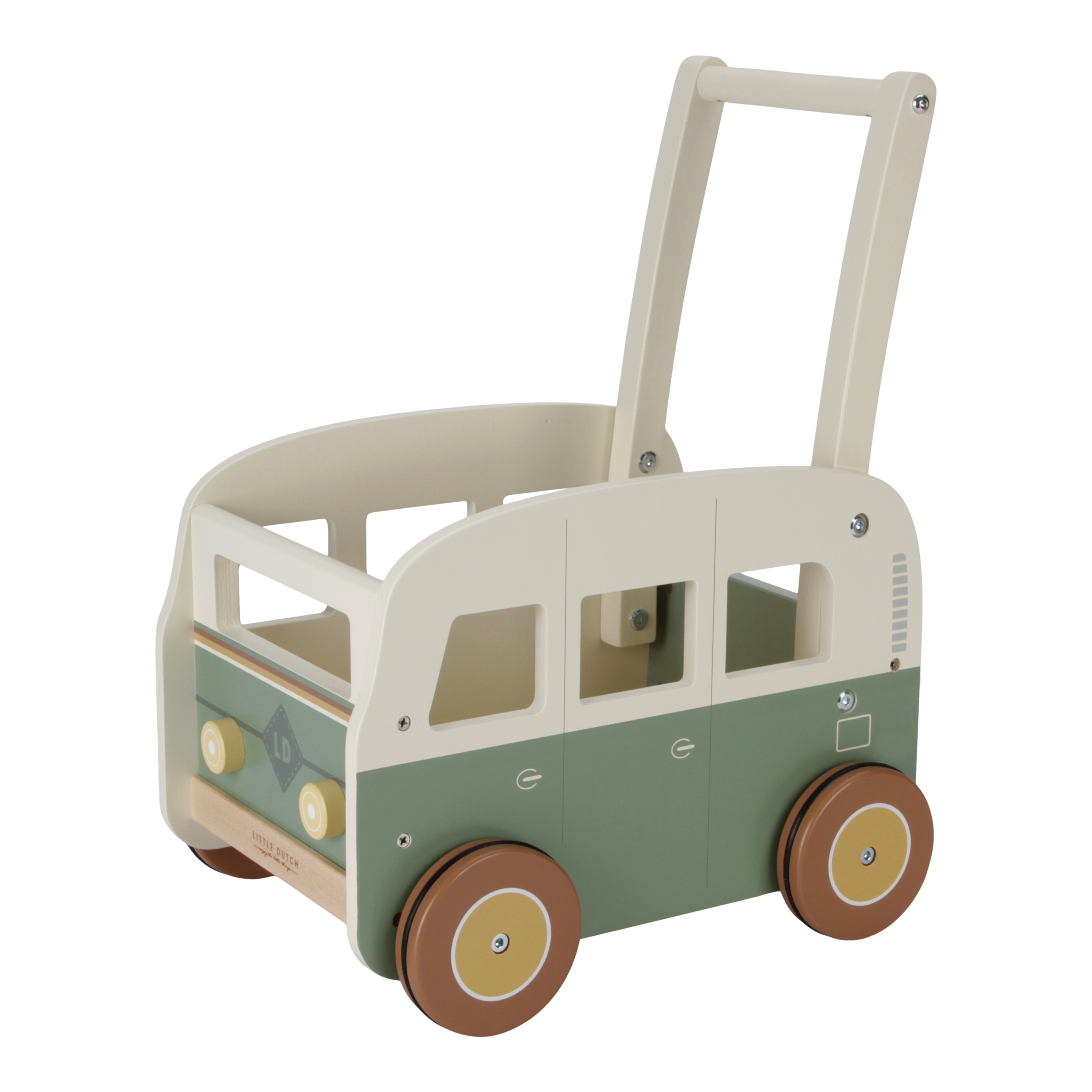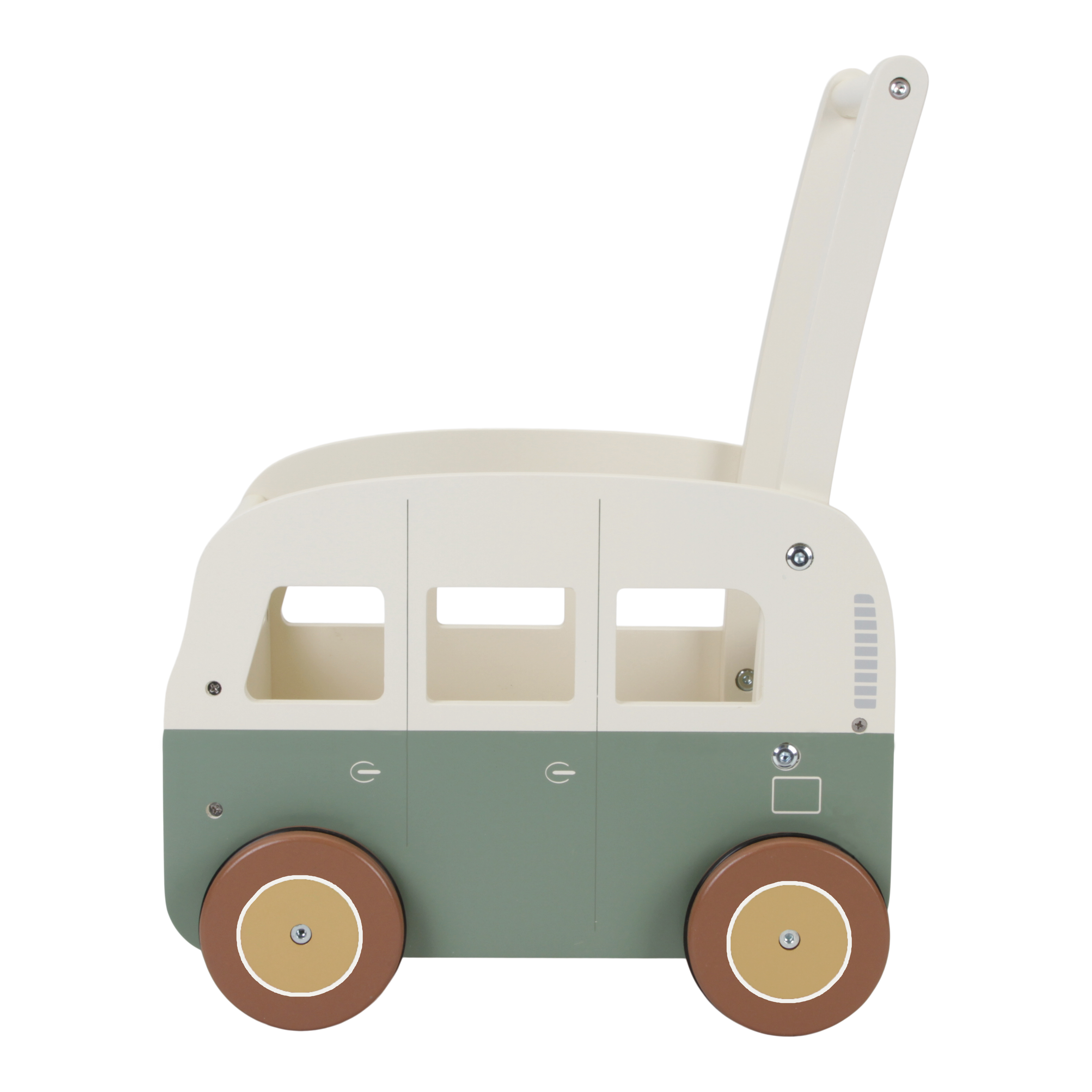 Klaar voor een fantasierijke roadtrip? Deze houten Vintage wagen, geïnspireerd op een klassiek surfersbusje, is dé metgezel voor kleine avonturiers. Je kindje kan het busje vullen met favoriete knuffels, blokken of ander speelgoed en het overal mee naartoe rijden. Ideaal voor het opbergen én vervoeren van speelgoed tijdens het spelen. Het retro design met speelse details maakt het een echte blikvanger in huis. En dankzij de rubberen strips om de wielen blijft je vloer goed beschermd bij ieder ritje.