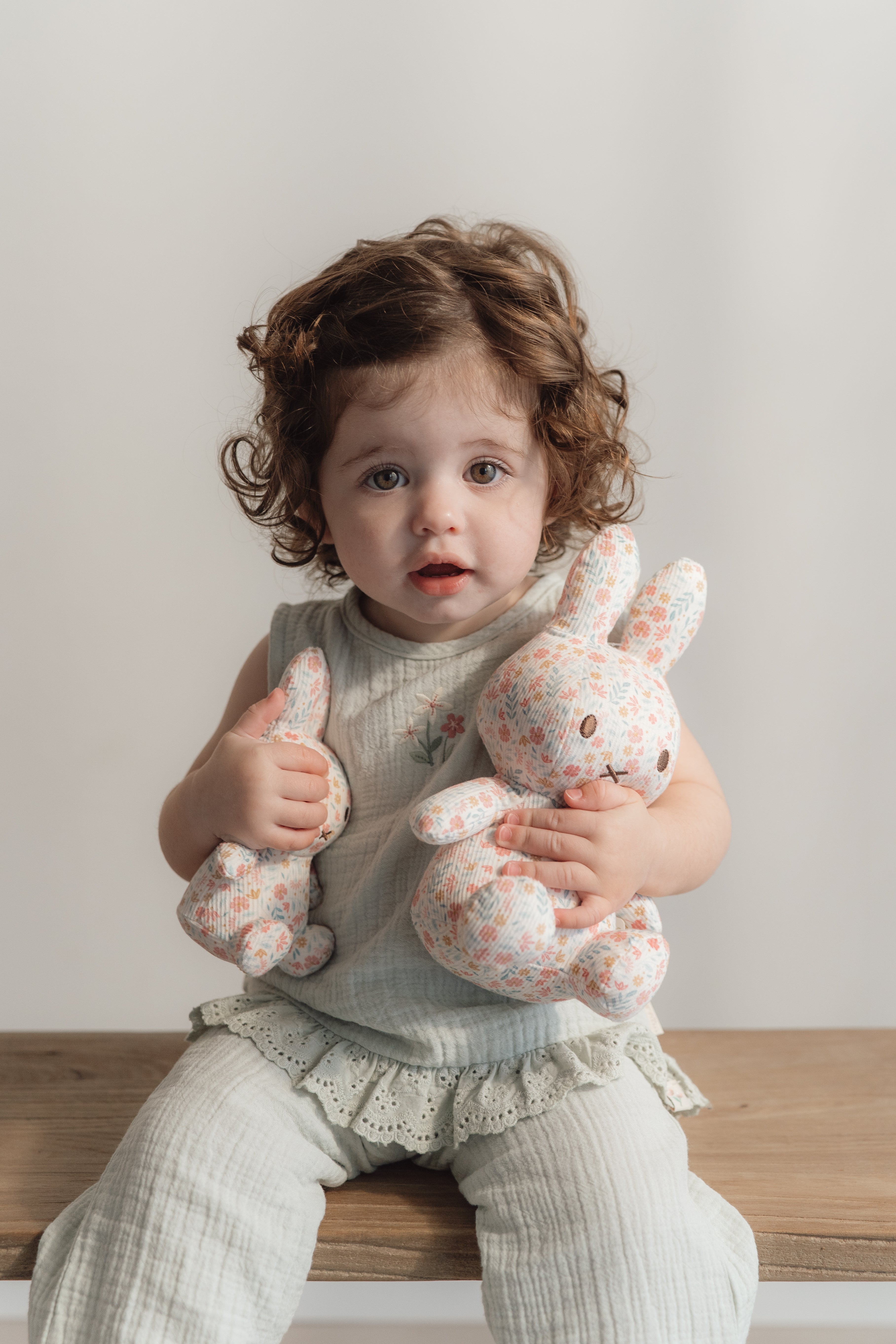 Met een speels belletje binnenin is ze niet alleen een trouwe knuffelvriend, maar ook een schattige toevoeging aan de babykamer. Geschikt vanaf de geboorte.