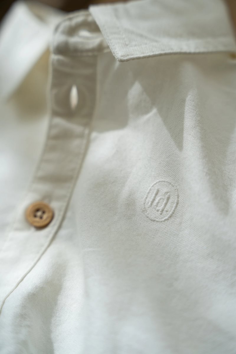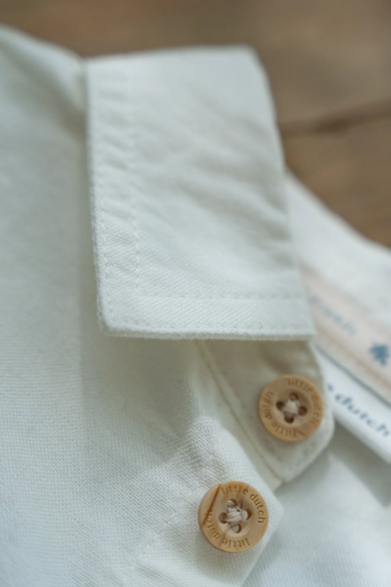 Stof met klein structuurtje, hout-look knoopjes, Little Dutch logo borduursel op de borst, gemaakt van biologisch katoen, Oekotex gecertificeerd.