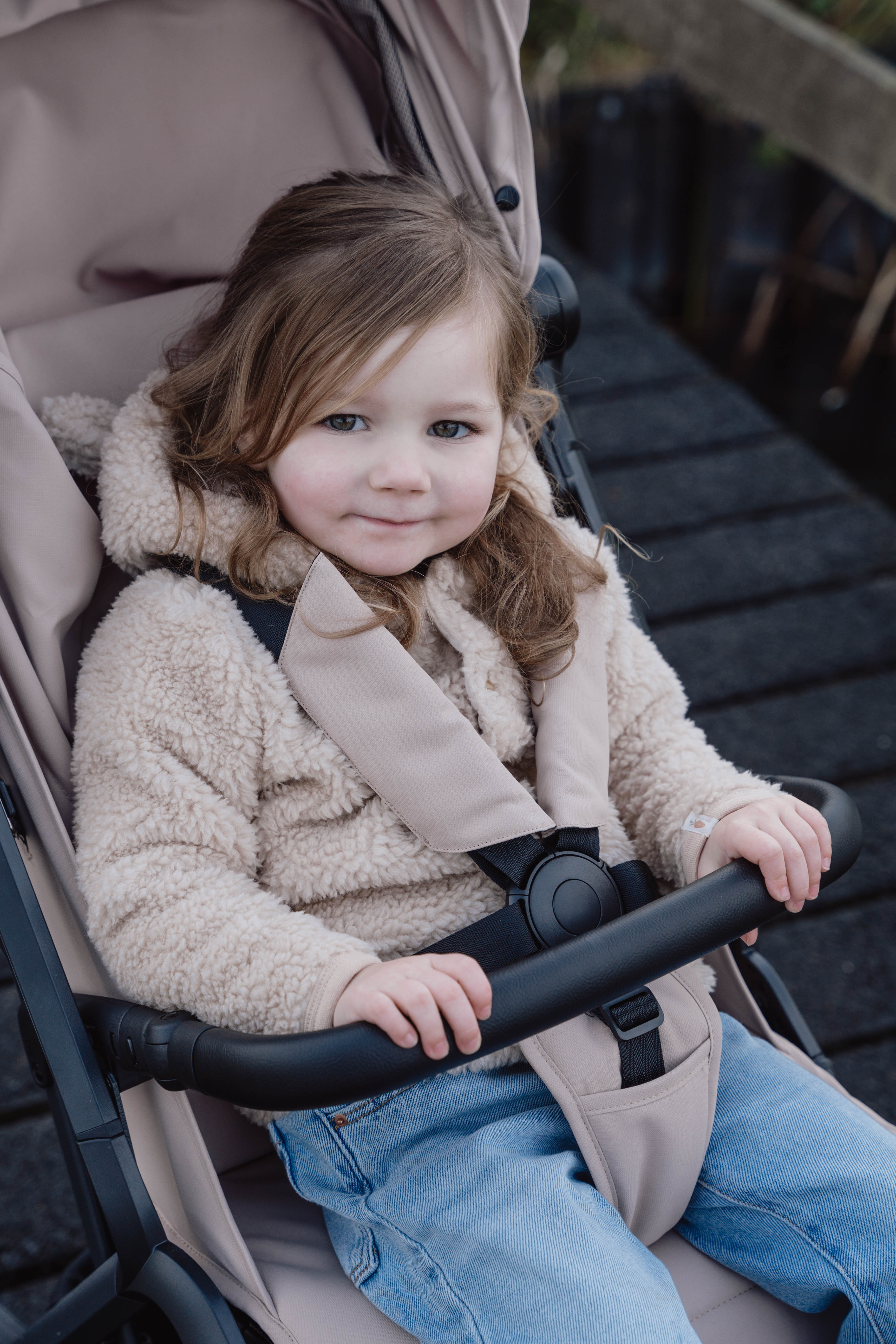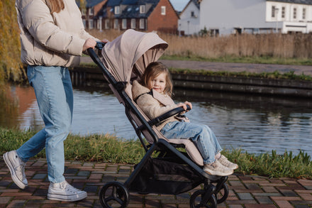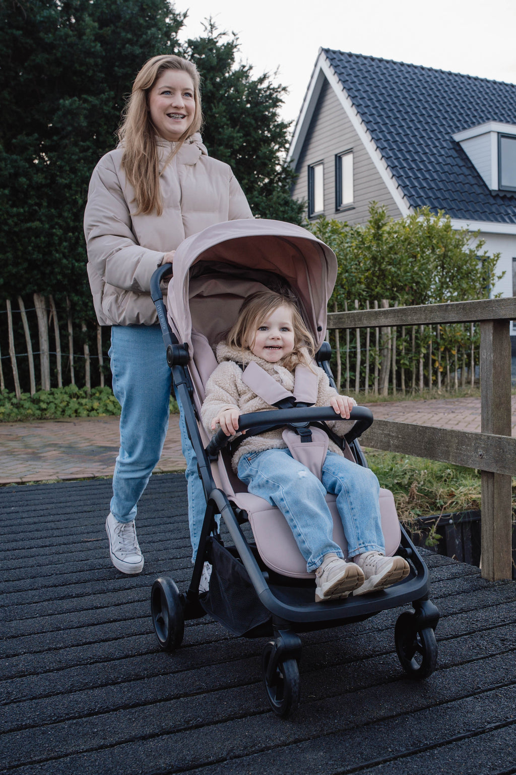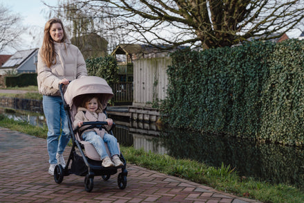 De buggy rijdt soepel en kan met slechts één hand worden geduwd om multitasken mogelijk te maken tijdens een wandeling met je kindje.