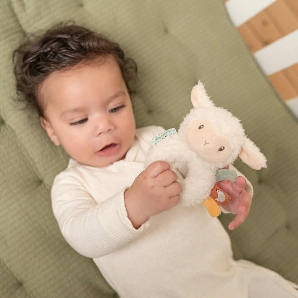 Deze zachte rammelaar kan makkelijk door kleine kinderhandjes vastgehouden worden en is daarom erg leuk als eerste speelgoed. Binnenin de rammelaar zit een belletje wat de zintuigen van je kindje stimuleert. De rammelaar is gemaakt van zachte pluizige stof en daardoor ook nog eens geschikt om mee te knuffelen. Leeftijd: vanaf de geboorte.