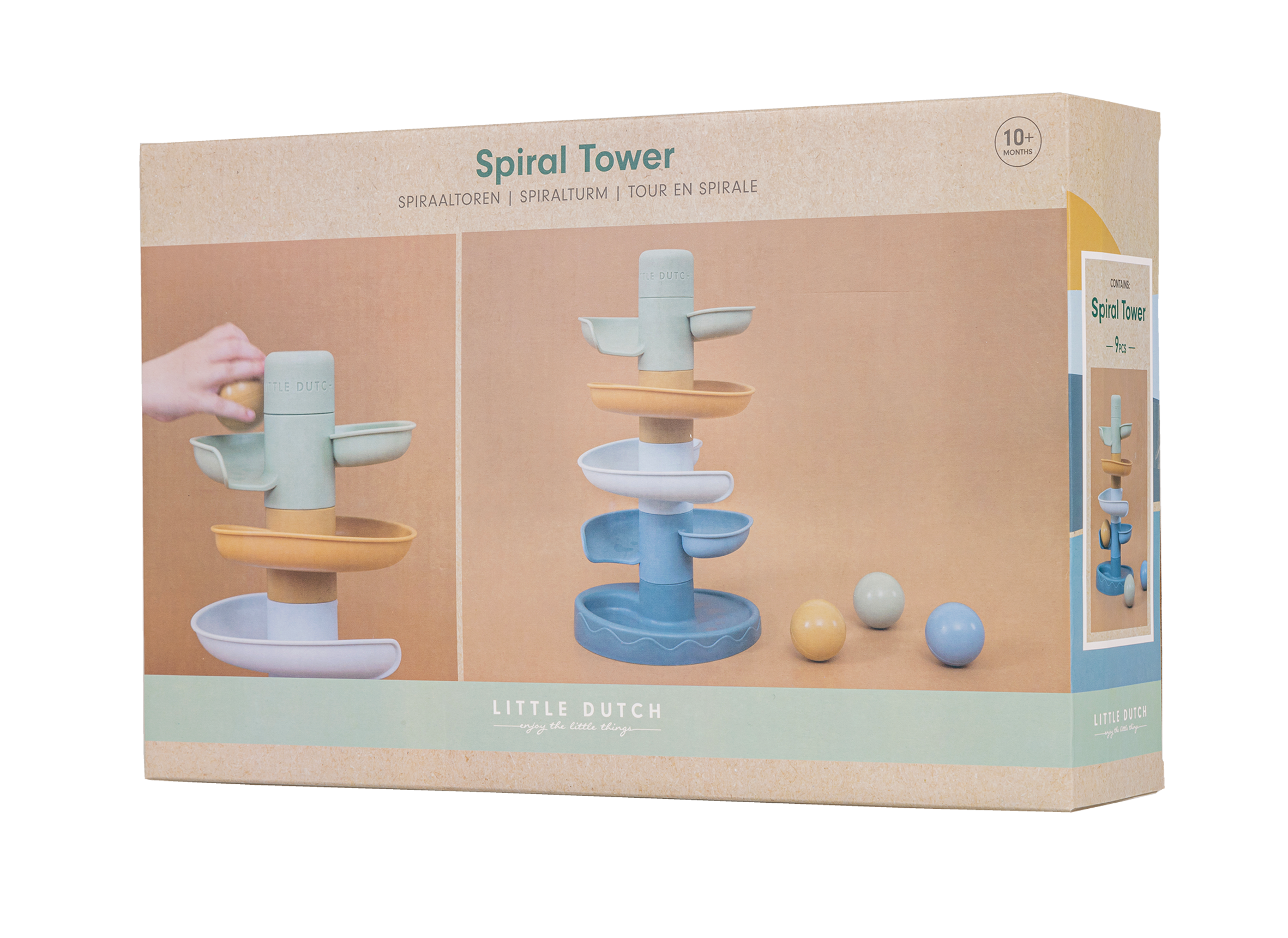 De spiraaltoren draagt bij aan de ontwikkeling van de hand-oog coördinatie en leert kleintjes over oorzaak en gevolg, waarmee het zowel leuk als leerzaam spelen is. Bij de spiraaltoren zitten standaard 3 lichte en gemakkelijk vast te pakken ballen in verschillende kleuren die bij beweging een geluidje maken. Dit speelgoed is uitgevoerd in de super trendy Little Dutch retro kleuren.