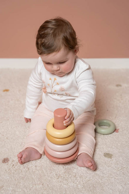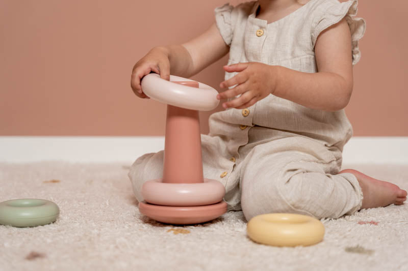 Oefen je behendigheid en coördinatie met de handjes met deze stapeltoren van Little Dutch.