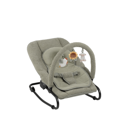 Met de twee riemen zit je baby stevig vast. De boog met drie kleine speeltjes uit de Little Goose collectie, zorgt voor extra vermaak. Het wipstoeltje wordt geleverd met een zacht en comfortabel verkleinkussen voor de eerste maanden. De rugleuning en het voetensteuntje zijn afzonderlijk van elkaar in verschillende posities te verstellen en zijn rijk gepolsterd voor extra zit- en ligcomfort. De wipstoel is geschikt vanaf de geboorte, tot 6 maanden en maximaal 9 kg. Het zwarte frame geeft de wipstoel een stijlvolle uitstraling en er zijn 3 warme kleuren verkrijgbaar: olijf, grijs en roest.