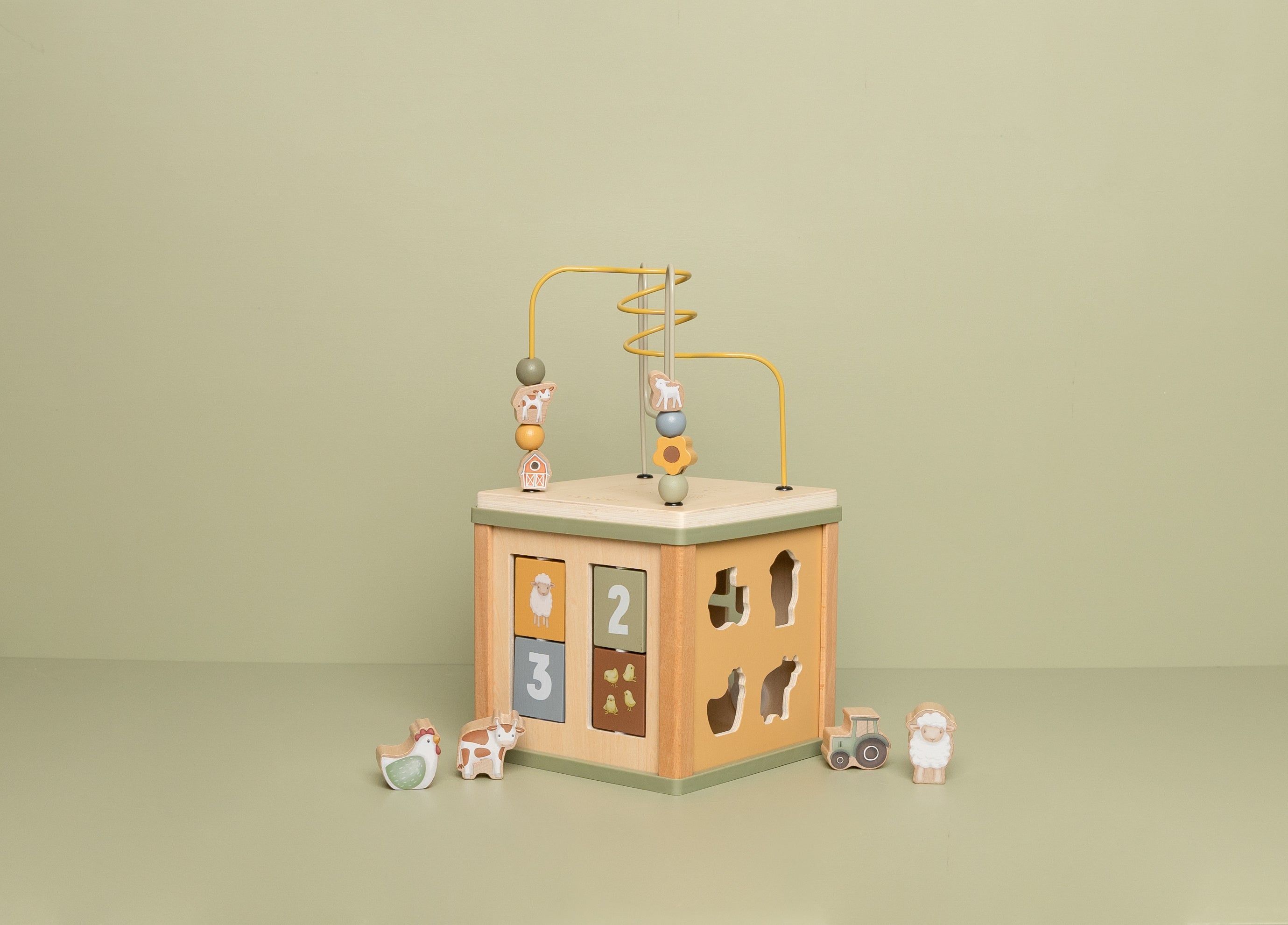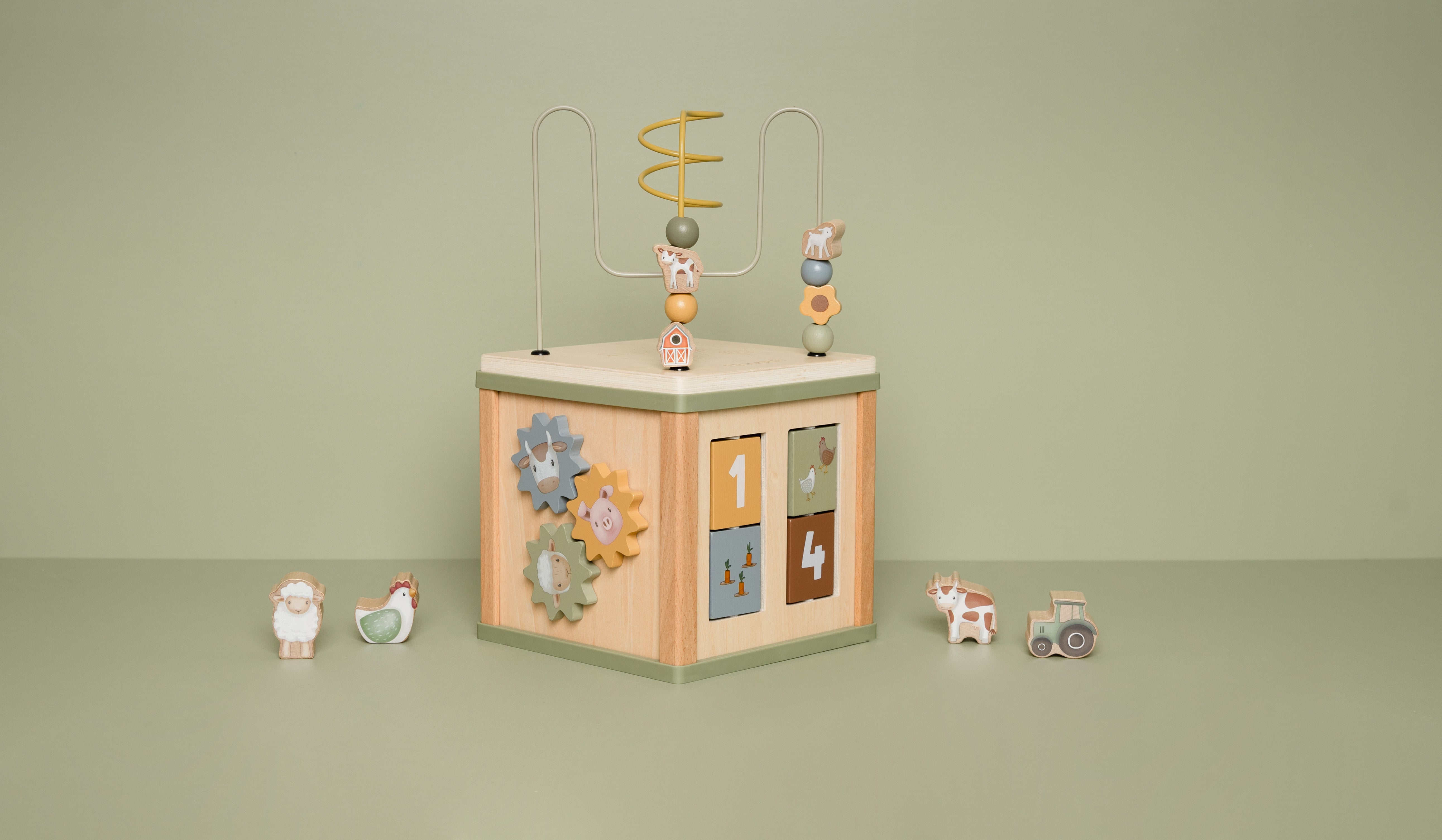 Deze activiteitenkubus zorgt voor volop uitdagingen voor je kindje. Iedere kant is geïllustreerd met de vriendjes die je vindt op de boerderij en biedt een leerzame activiteit zoals een vormenstoof, draaiende tandwielen, puzzels en boven op een leuke kralenspiraal. Bij elke activiteit ontwikkelen kinderen hun fijne motoriek en worden ze aangemoedigd om hun creativiteit te gebruiken. Dit speelgoed wekt nieuwsgierigheid bij kinderen op en zorgt voor veel speelplezier.