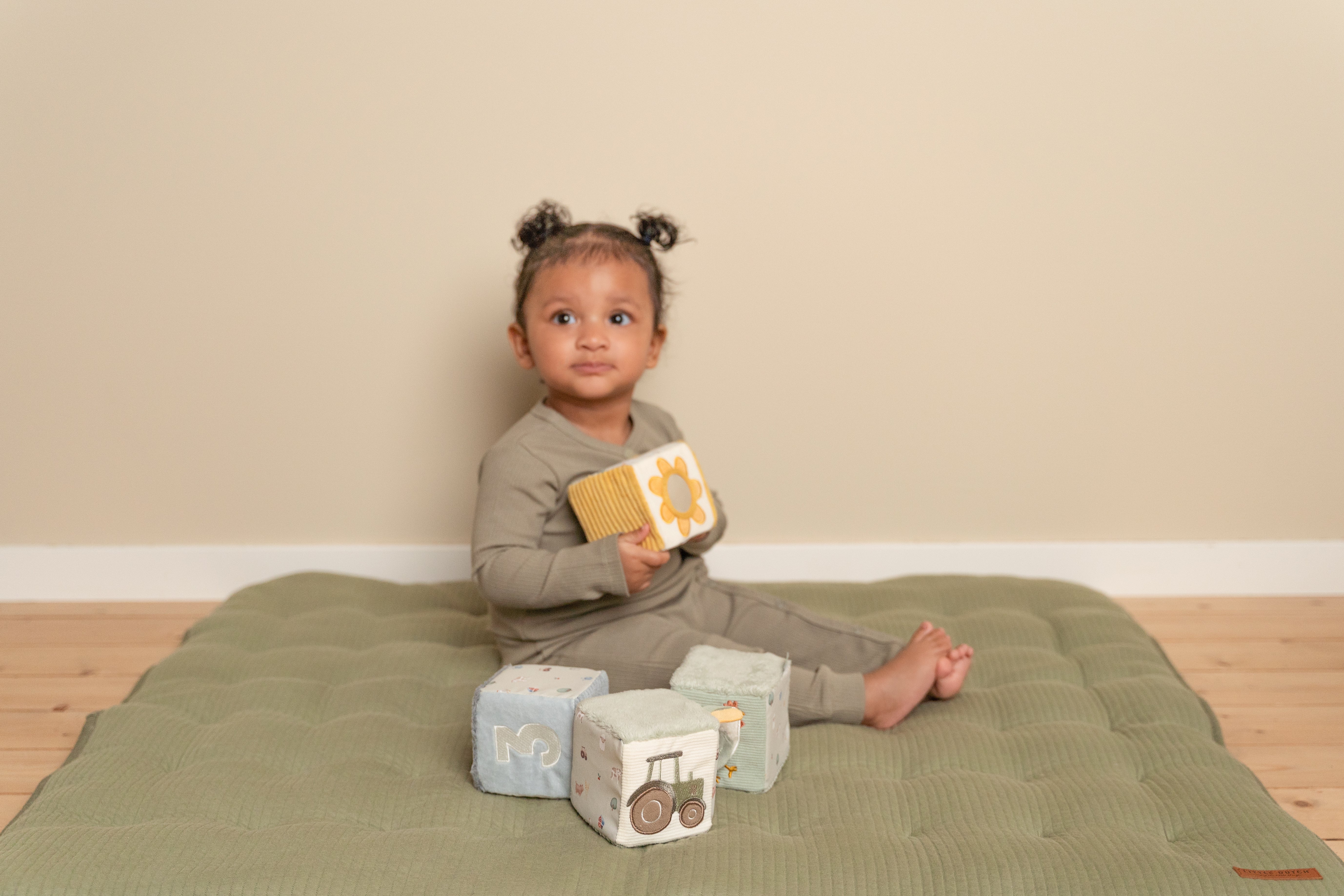 Wondermooie zachte blokkenset bestaande uit 4 blokken van Little Dutch. Deze leuke speelblokken stimuleren de zintuigen van je kleine spruit.