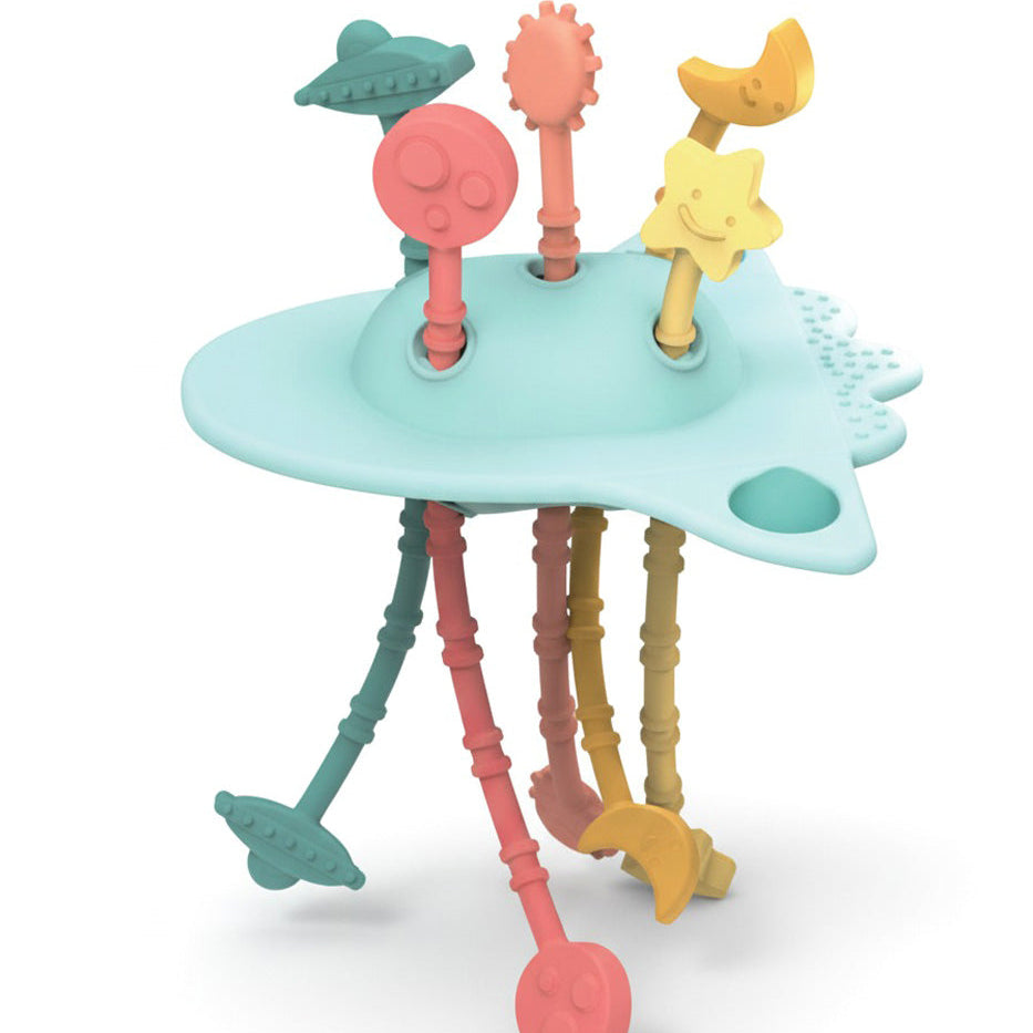 Een veelzijdig fidget-speeltje met een mix van tactiele, zintuiglijke en visuele elementen. De geribbelde tentakels maken ritsende geluiden terwijl ze door de hoofdnaaf worden getrokken, elk in een andere kleur en met verschillende vormen en patronen.