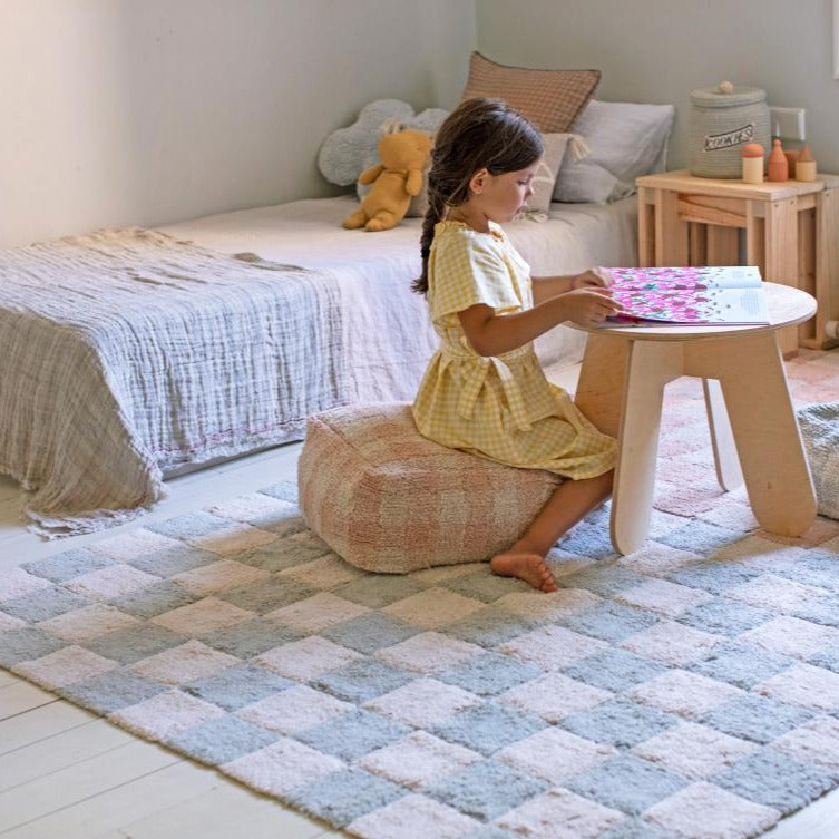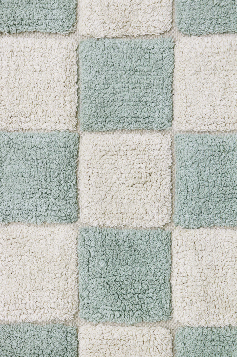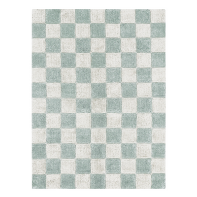 Groot tapijt van het Spaanse merk Lorena Canals. Van dit tapijt heb je jaren plezier. Dit ontwerp verbeeldt het traditionele dambordpatroon van keukentegels op een tapijt. De contrasterende vierkanten in donkergrijs en naturel voegen een gedurfd statement toe aan elke kamerinrichting.