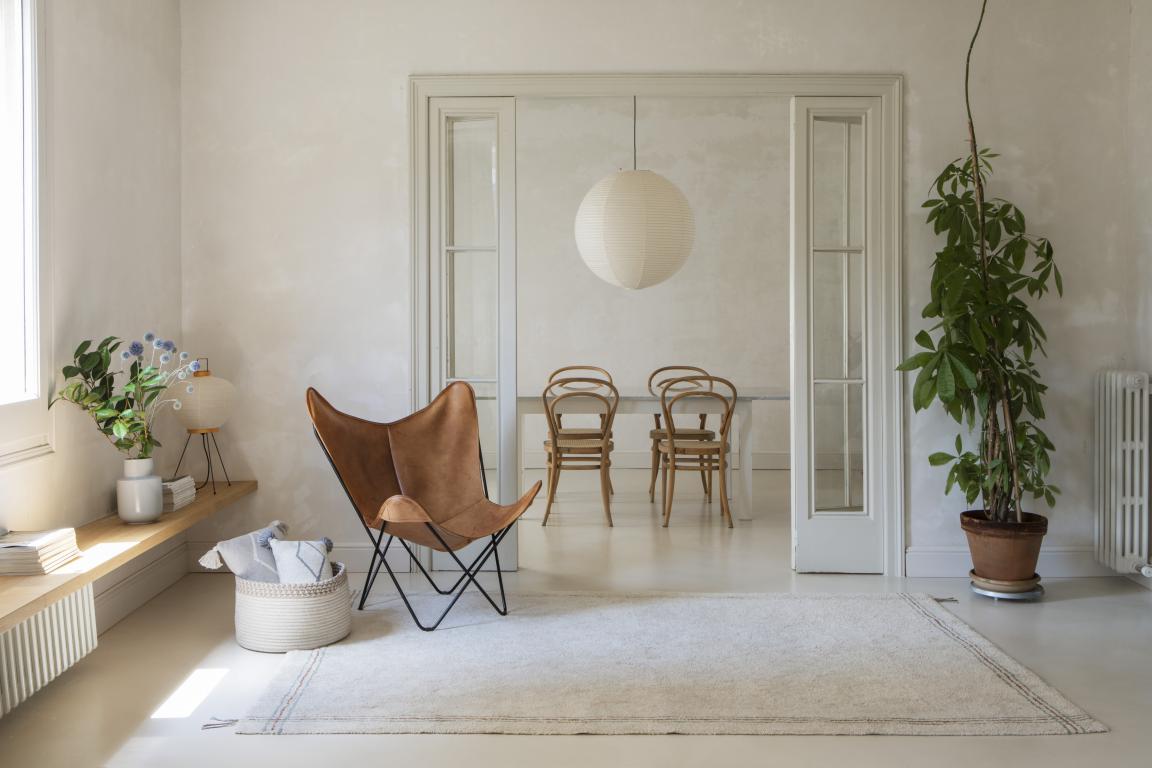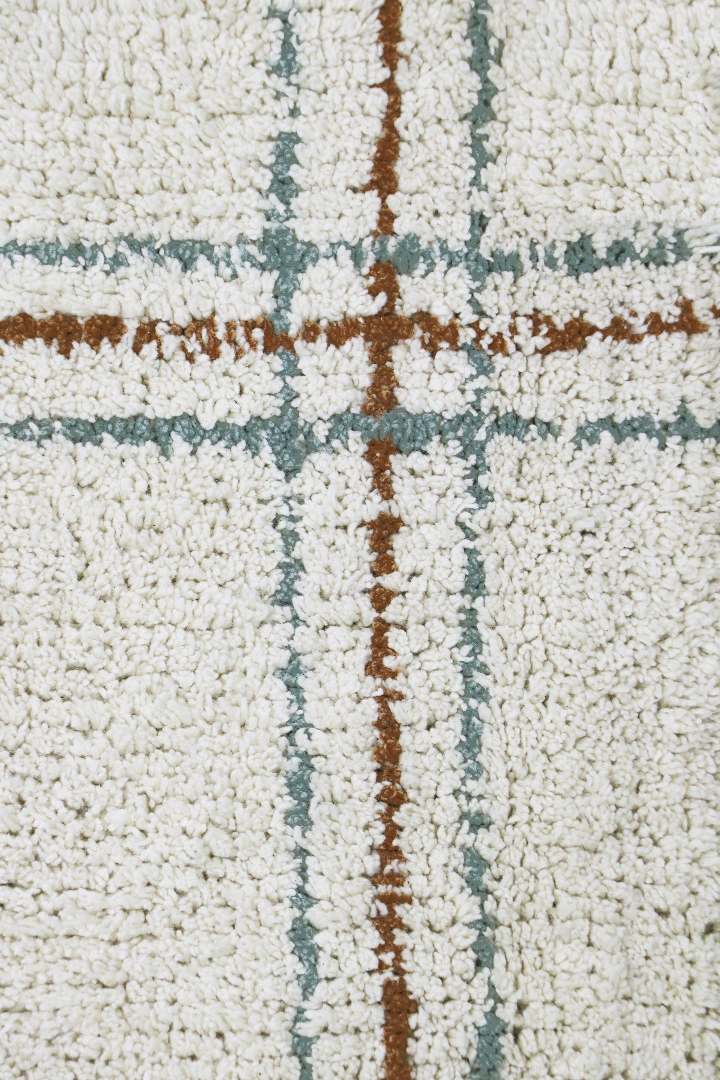 En katoenen tapijt van Lorena Canals in zachte kleuren. Een veelzijdig ontwerp dat prachtig staat in je interieur.