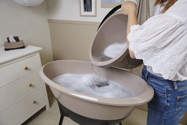 Dit babybadje is van het merk Luma. Het is een ovaalvormig badje.