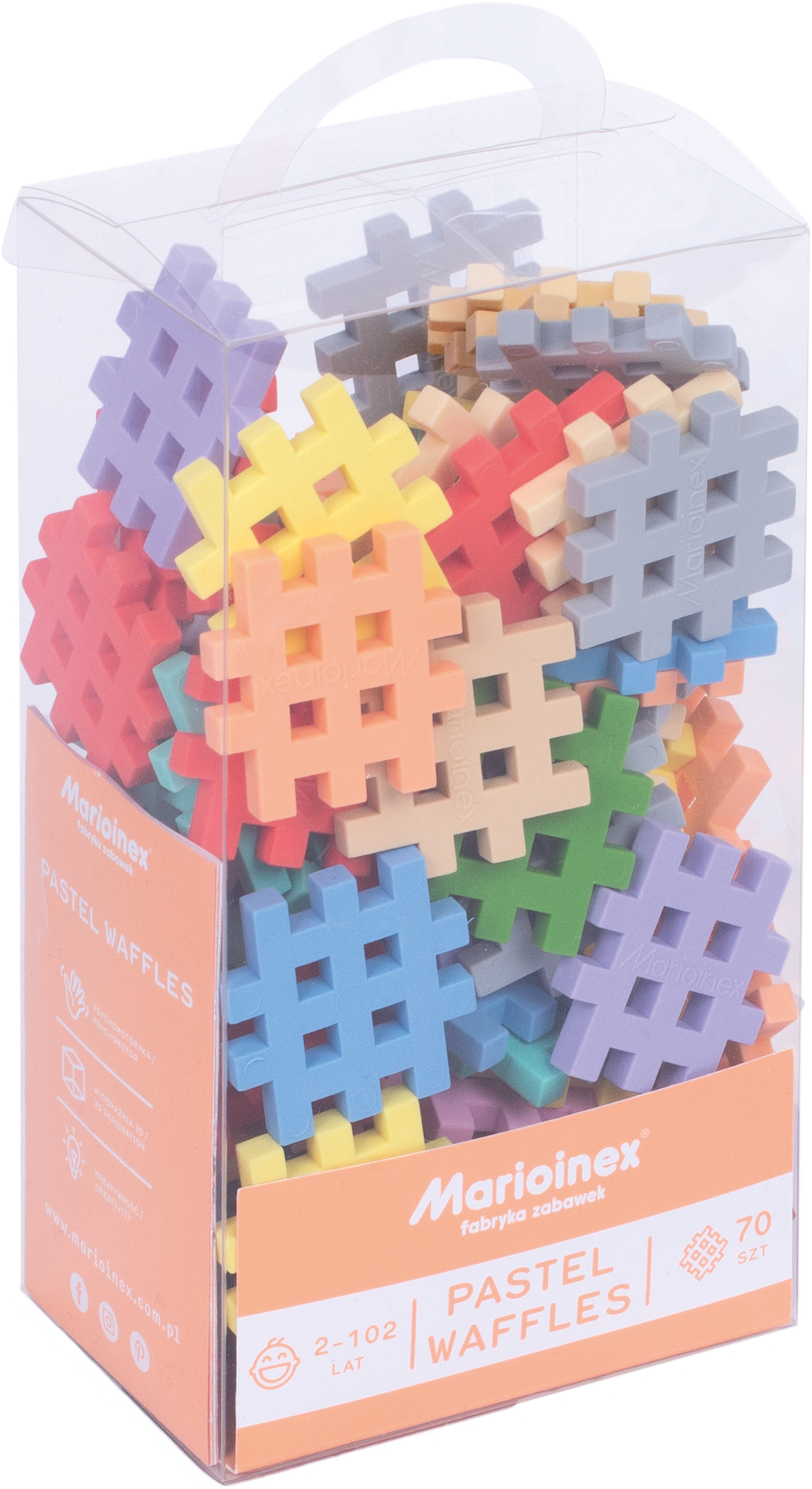 In totaal bevat deze set 70 onderdelen die je kindje onderdompelt in uren speelplezier en heel wat creativiteit losmaakt! De zachte pastelkleuren werken rustgevend en bevorderen de concentratie.