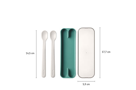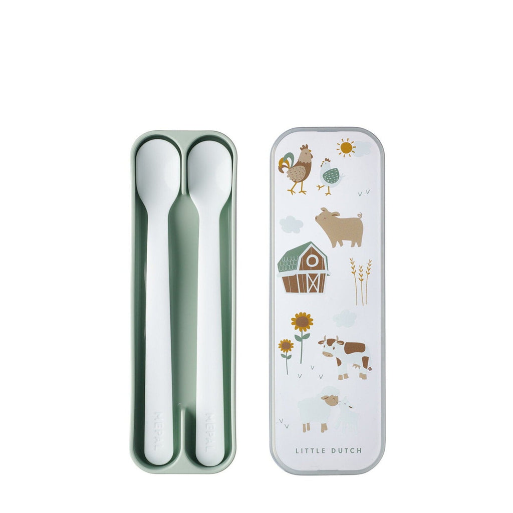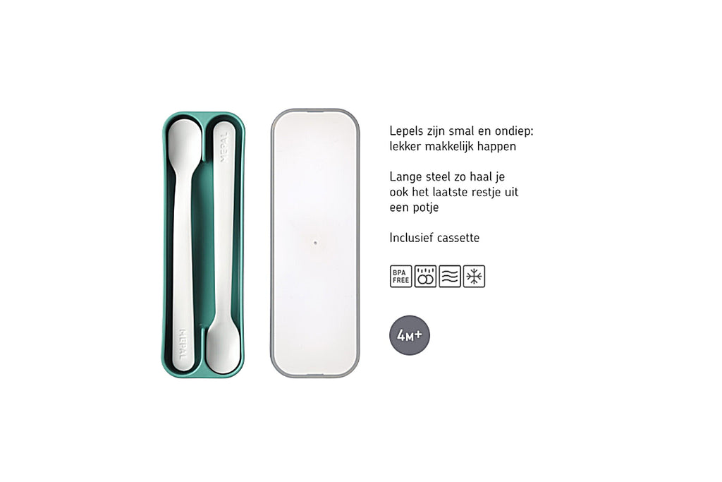 Deze mooie lepelset van Mepal bestaat uit twee lepels in prachtige kleuren. Dankzij de structuur kan je kindje het bestek comfortabel vasthouden en gemakkelijk te gebruiken.