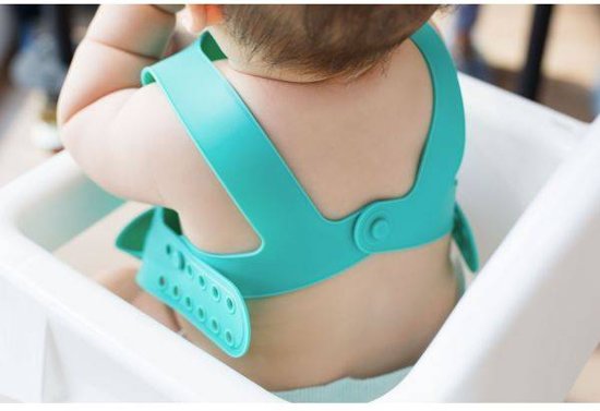 Deze siliconen slab is verstelbaar in grootte en groeit dus mee met je kindje! Er is een handig opvangbakje aan om te voorkomen dat er veel eten op de grond valt en ze blijft supergoed zitten door het riempje eraan.