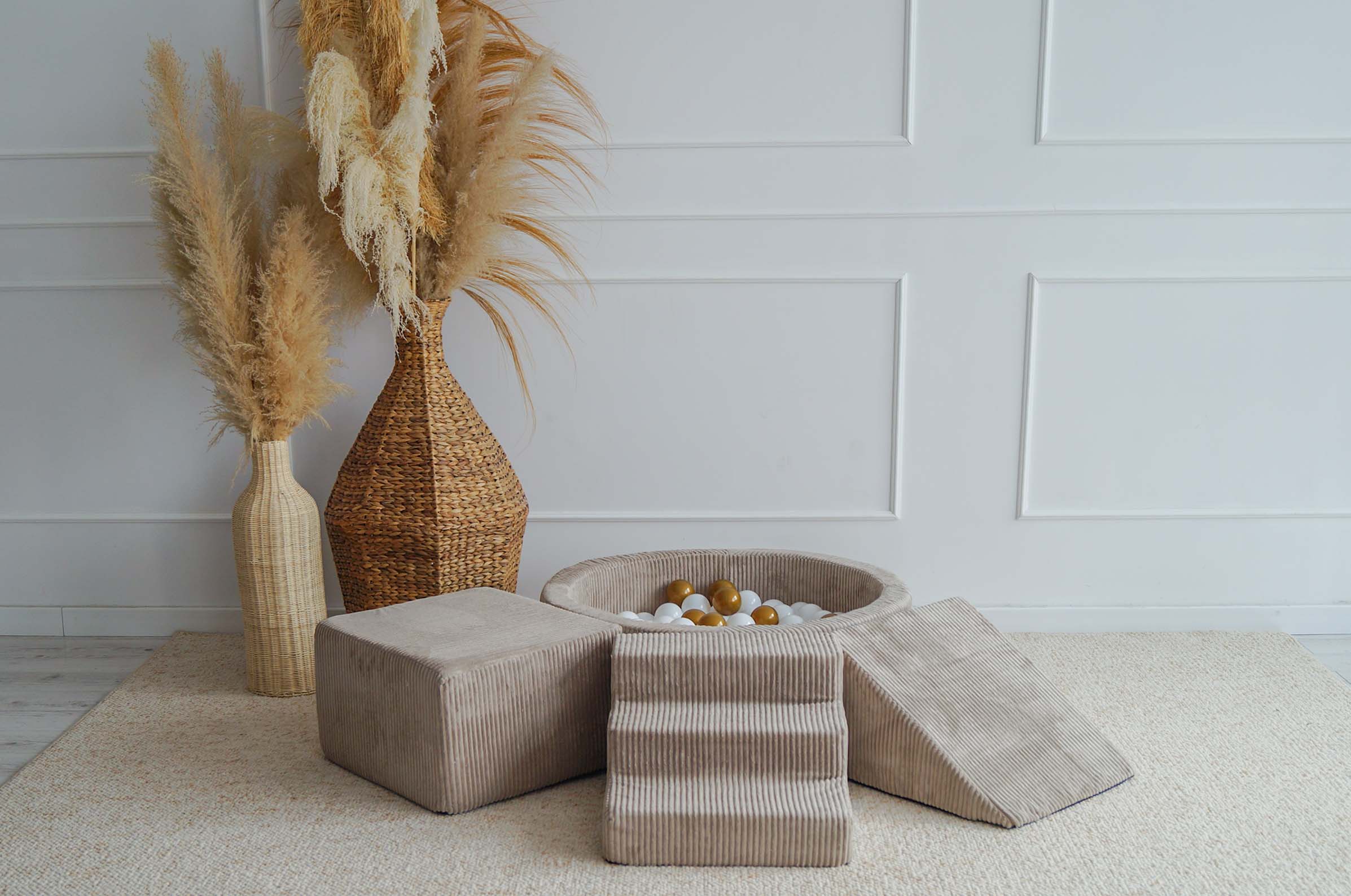 Wat maakt een echte speel-of kinderkamer helemaal af? Deze prachtige set bestaande uit ballenbad en 3 speelelementen van Moje.