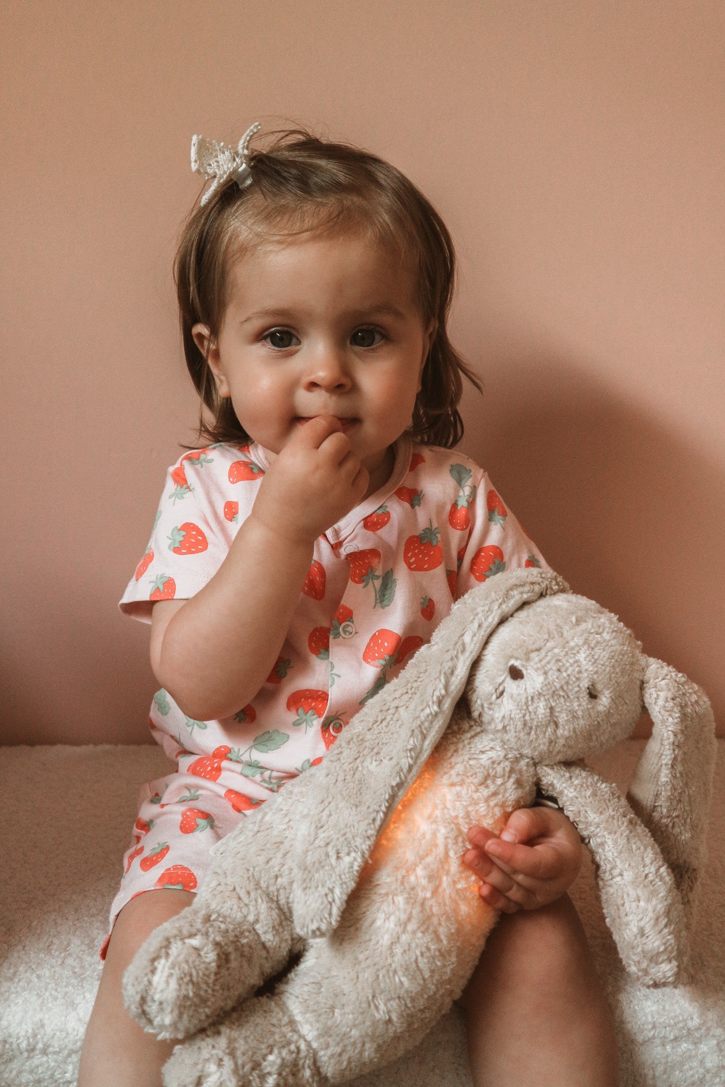 Daarnaast kan je kiezen uit 7 verschillende ledlichtjes, warme en koele tinten, die je op het buikje van de knuffelbeer kan zien. Deze lichtjes stellen gerust en brengen tot rust. Wanneer je kindje zijn knuffel beweegt gaat deze in "schudmodus" en springen de lichtjes weer aan.