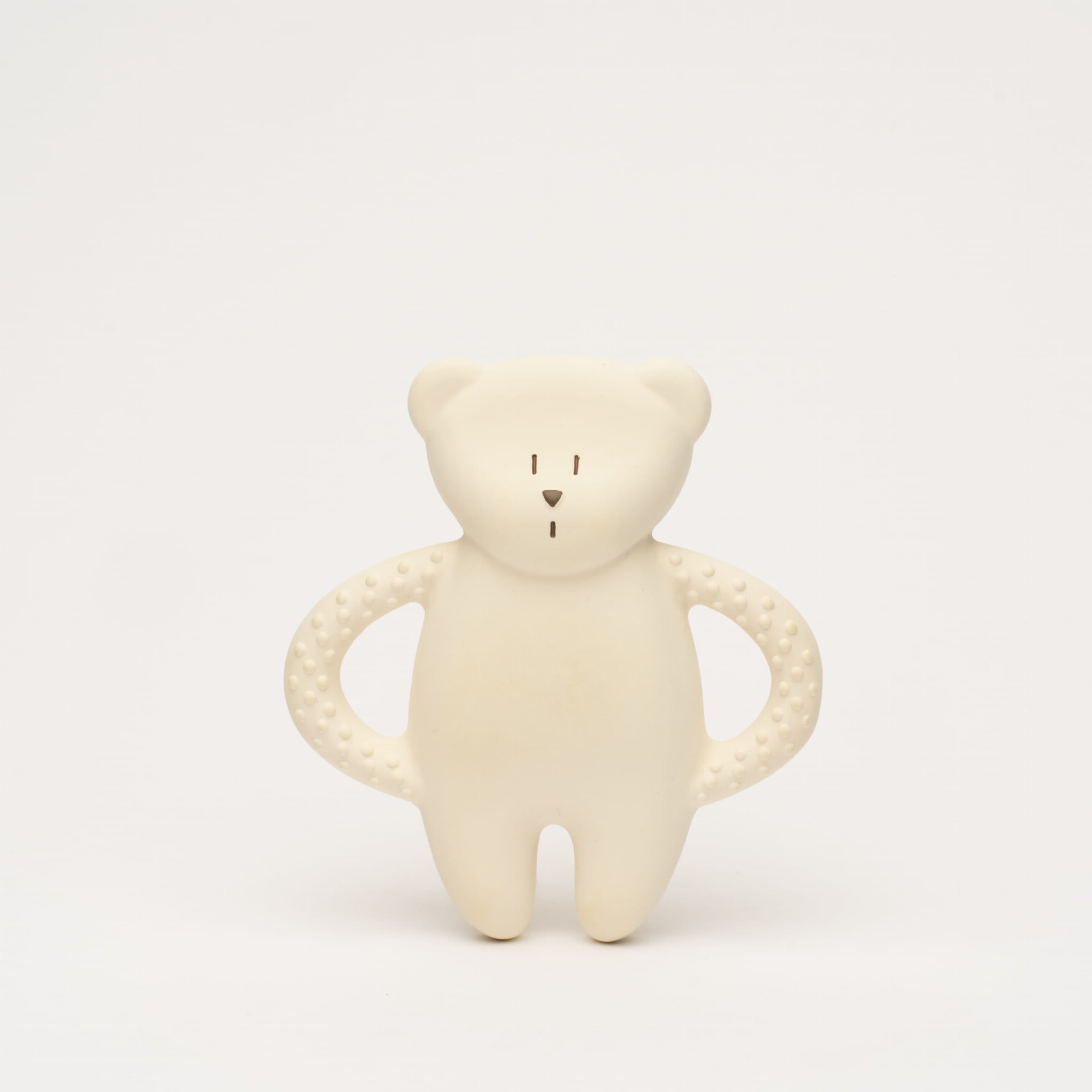 Mooie bijtring gemaakt van natuurlijk rubber van Moonie. Bij doorkomende tandjes verlicht een bijtring pijn aan het tandvlees. Het stimuleert daarbij ook veilige en plezierige zintuiglijke ervaringen.
