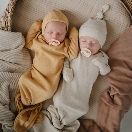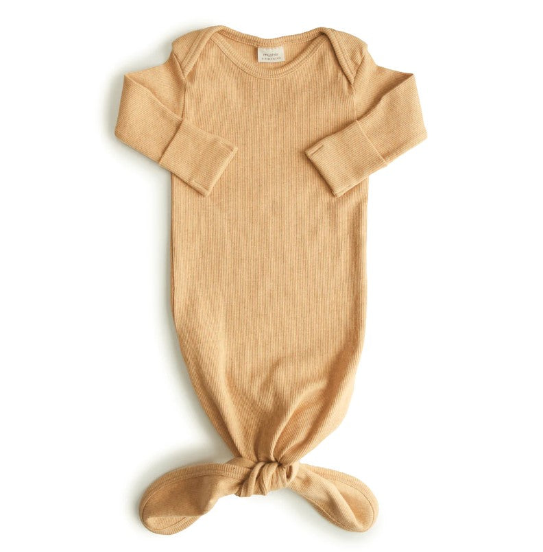 Mushie Baby Gown Ribbed Knotted | Mustard Melange