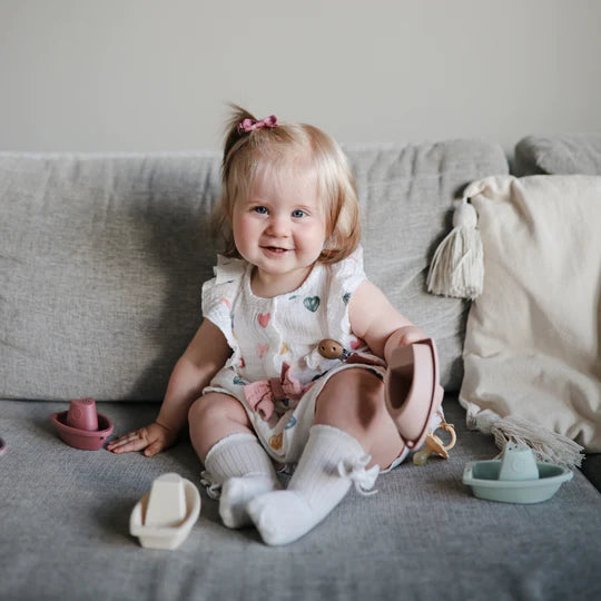 Superleuk badspeelgoed van het merk Mushie. Zachte pastelkleurtjes die mooi in uw interieur passen. De speelbootjes passen in elkaar en hebben allemaal leuke zachte kleuren. Deze zijn geschikt voor kiddo's vanaf 10 maanden.