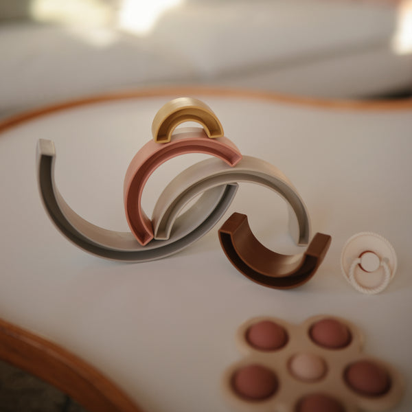 De bijtringen van Mushie zijn gemaakt van 100% niet-giftige siliconen van voedingskwaliteit en zijn BPA- en ftalaatvrij, waardoor je baby er veilig van kan genieten. De leuke vormen en mooie kleuren zijn prachtig! Om schoon te maken, wassen met warm zeepachtig water en laten drogen.