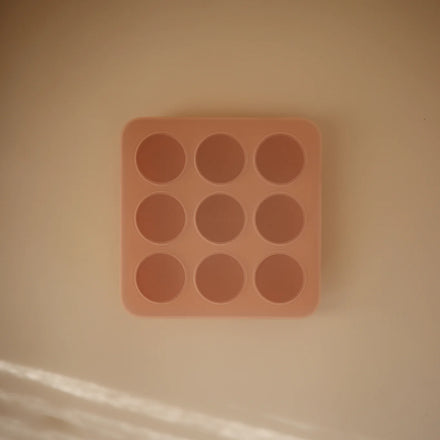 Handige silicone vriesbakjes van Mushie voor het bewaren van voedsel en melk voor je kleintje. De negen kopjes bevatten elk 4,5 ml en hebben milimetermarkeringen langs de binnenkant. Bevroren producten komen eenvoudig uit siliconen basissen. Het clip-on deksel houdt het eten veilig voor je kleintje.