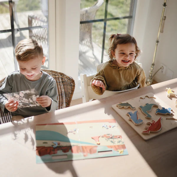 Laat je kleintje kennismaken met deze coole dino puzzel van Mushie.