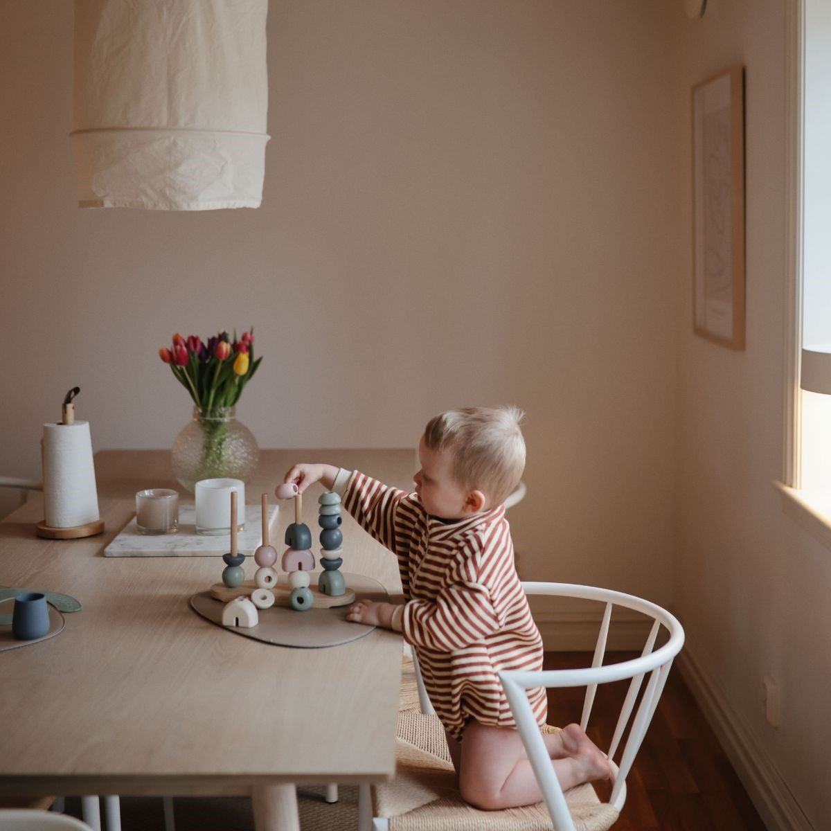 Stimuleer de fijne motoriek en het probleemoplossend vermogen van je kindje met deze stijlvolle houten stapelaar van Mushie. De set bestaat uit verschillende vormen en zachte kleuren die perfect passen in elke kinderkamer. Gemaakt van duurzaam hout en veilig voor kleine handjes: ideaal voor uren speelplezier én educatie.