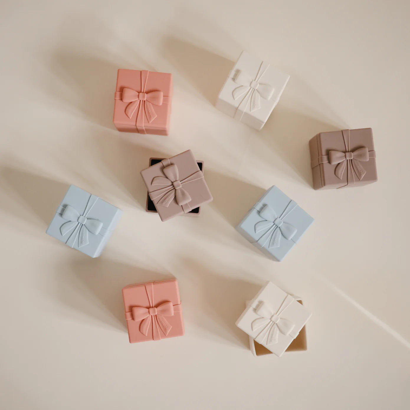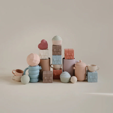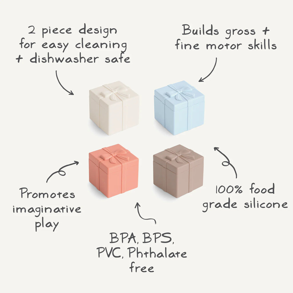 Maak kennis met de schattige Mix and Match silicone cadeautjes van Mushie, een duurzaam en stijlvol speelgoedcadeautje dat de nieuwsgierigheid van je kindje prikkelt! Deze kleurrijke cadeautjes met verwisselbare deksels nodigen uit tot eindeloos ontdekken, voelen en spelen.