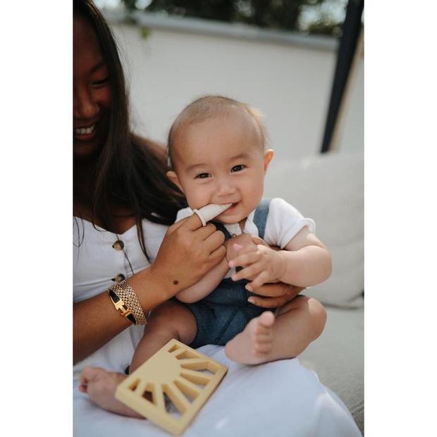 Hele handige vingertandenborstel of baby tandenborstel van het merk Mushie. Het kan nogal een klusje zijn om de tandjes van je baby/kind te borstelen. Ze bijten en zuigen vrolijk op de normale tandenborstels, maar als je eenmaal begint met borstelen is het vaak drama. Deze siliconen vingertandenborstel is gemakkelijk om je vinger te plaatsen en voelt zeer zacht aan in het mondje van je kind. Ook ideaal om je kindje te troosten bij doorkomende tandjes.