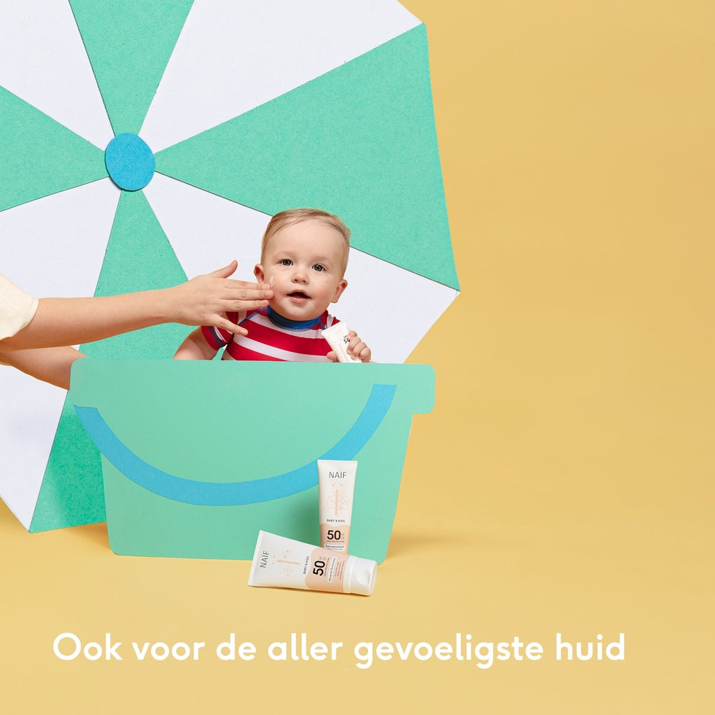 Natuurlijke zonnebrandcrème voor baby's en kids, met SPF 50. Op basis van minerale filters beschermt deze zonnebrandcrème direct, zonder een witte waas achter te laten.