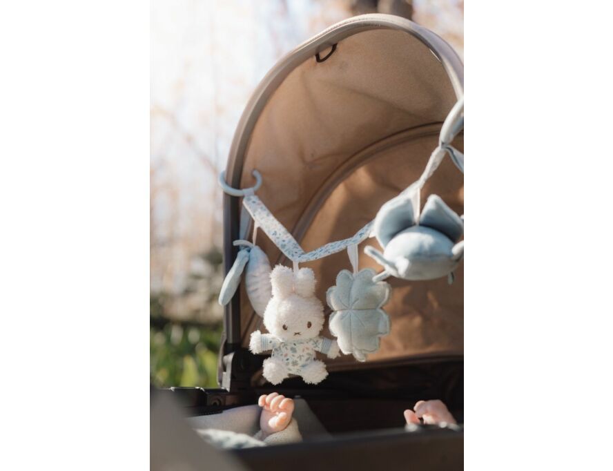 Prachtige nijntje x Little Dutch Lucky Leaves wagenspanner met daaraan onder meer een schattig nijntje knuffeltje waar je kleintje onderweg mee kan spelen. Nijntje, de blaadjes, het klavertje vier en de kever hebben elk een functie om te ontdekken. Vind het ratelende geluid, het piepen en knisperen! Bevestig de wagenspanner gemakkelijk aan de kinderwagen en je kleintje zal zich vermaken als jullie onderweg zijn. Ook goed voor de hand-oogcoördinatie!