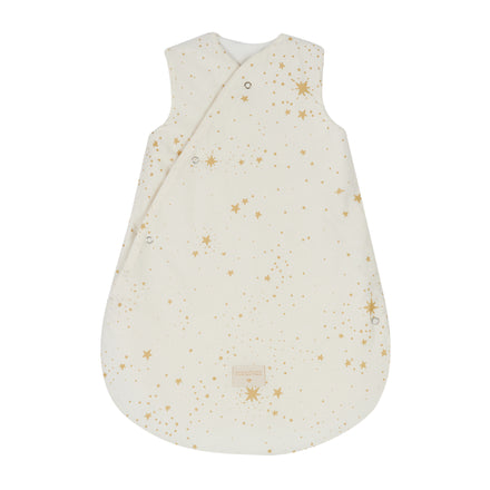 Deze leuke slaapzak van het Spaanse merk Nobodinoz houdt je baby heerlijk warm. De buitenzijde is bedrukt met een mooie print, de binnenzijde is in een effen kleur. De slaapzak is te openen en sluiten met een rits en sluit in het midden met een strikje. De slaapzak is extra gevoerd, zodat hij goed warm is.